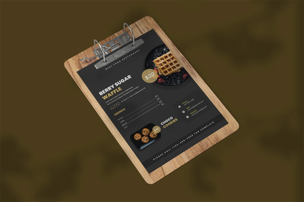 Menu Restaurant Template is a menu template for people who sell, business, or run a food-related business. The layout makes it easy to find the menu you want. Too many choices can make customers feel overwhelmed, so its better to limit the number of choices, colors, and other design elements so that customers can easily scan and order items.