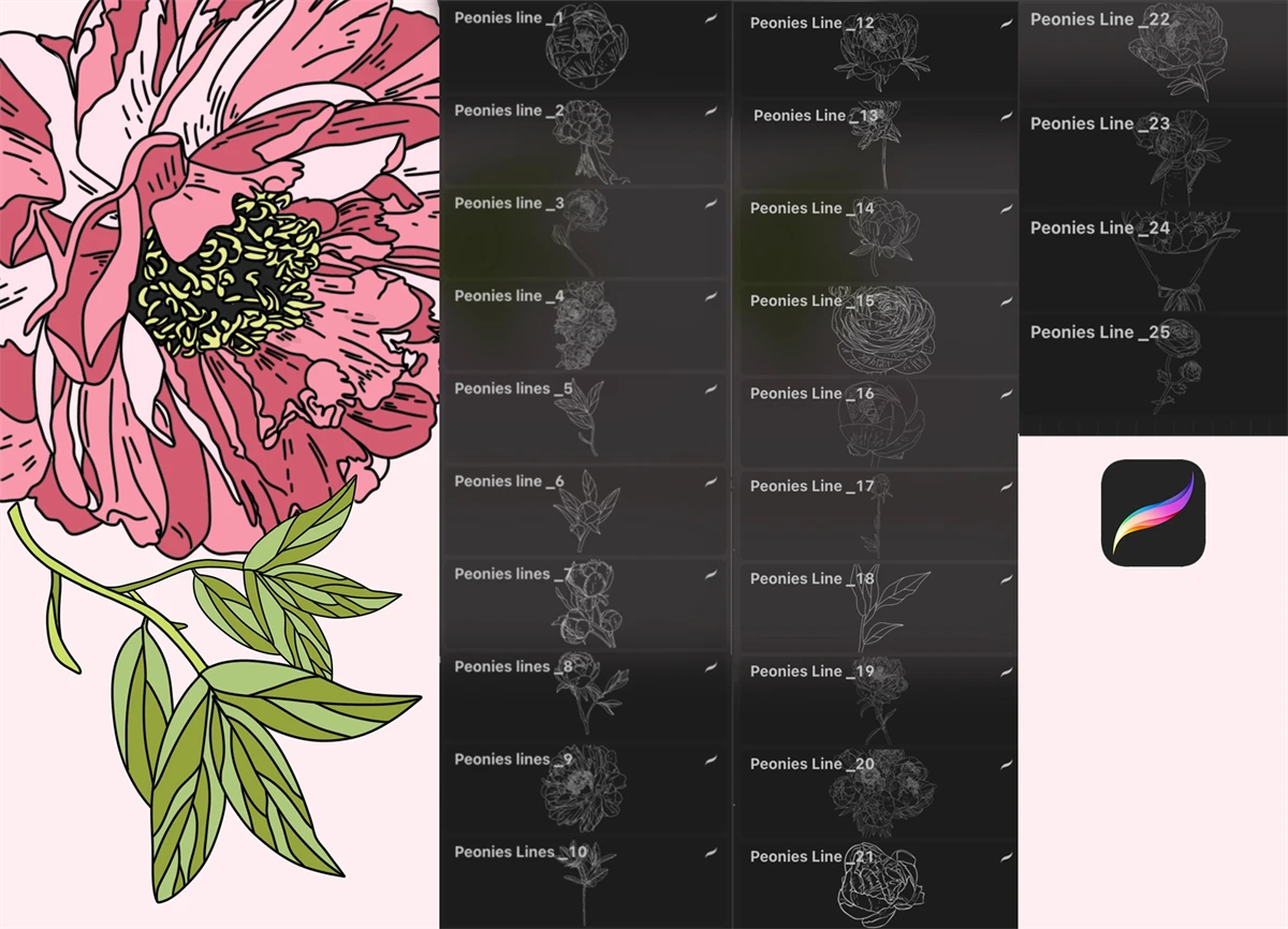 Important: Compatible with Procreate only. How to install brushes in Procreate https://support.creativemarket.com/hc/en-us/articles/115000851594-Installing-Procreate-Brushes