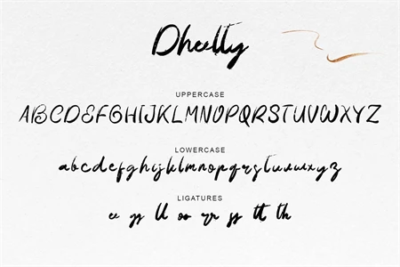 "Dheelty" is a unique and elegant handwritten brush font. This font is equipped with uppercase, lowercase, numerals, punctuation, ligatures, and multilingual support. Very suitable for film titles, book titles, horror films, music concerts, invitations, events, banners, posters, prints, and others.