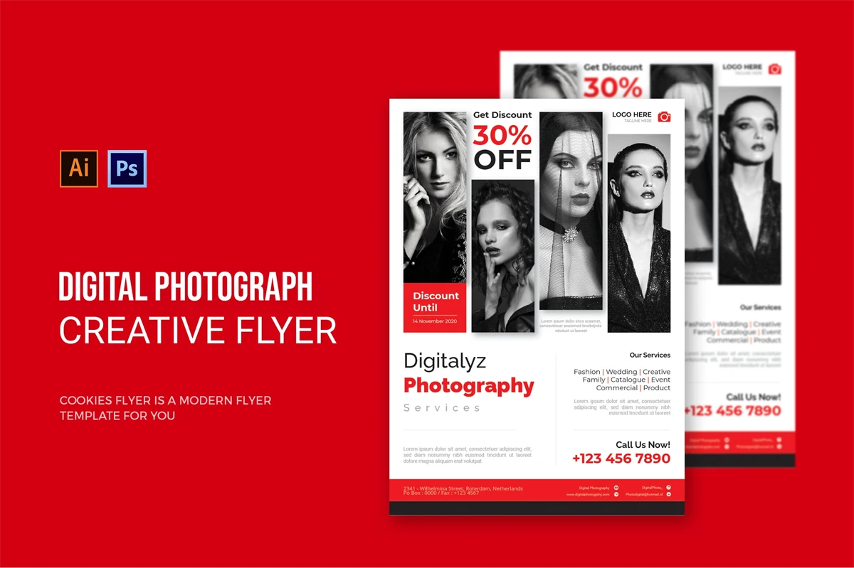 Digital Photography - Flyer. This Flyer template is designed for your company's business needs. very clean and elegant, and also easily edited and adjusted to your liking