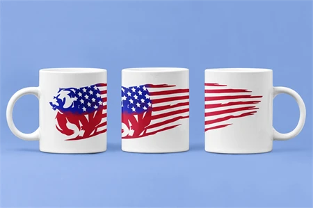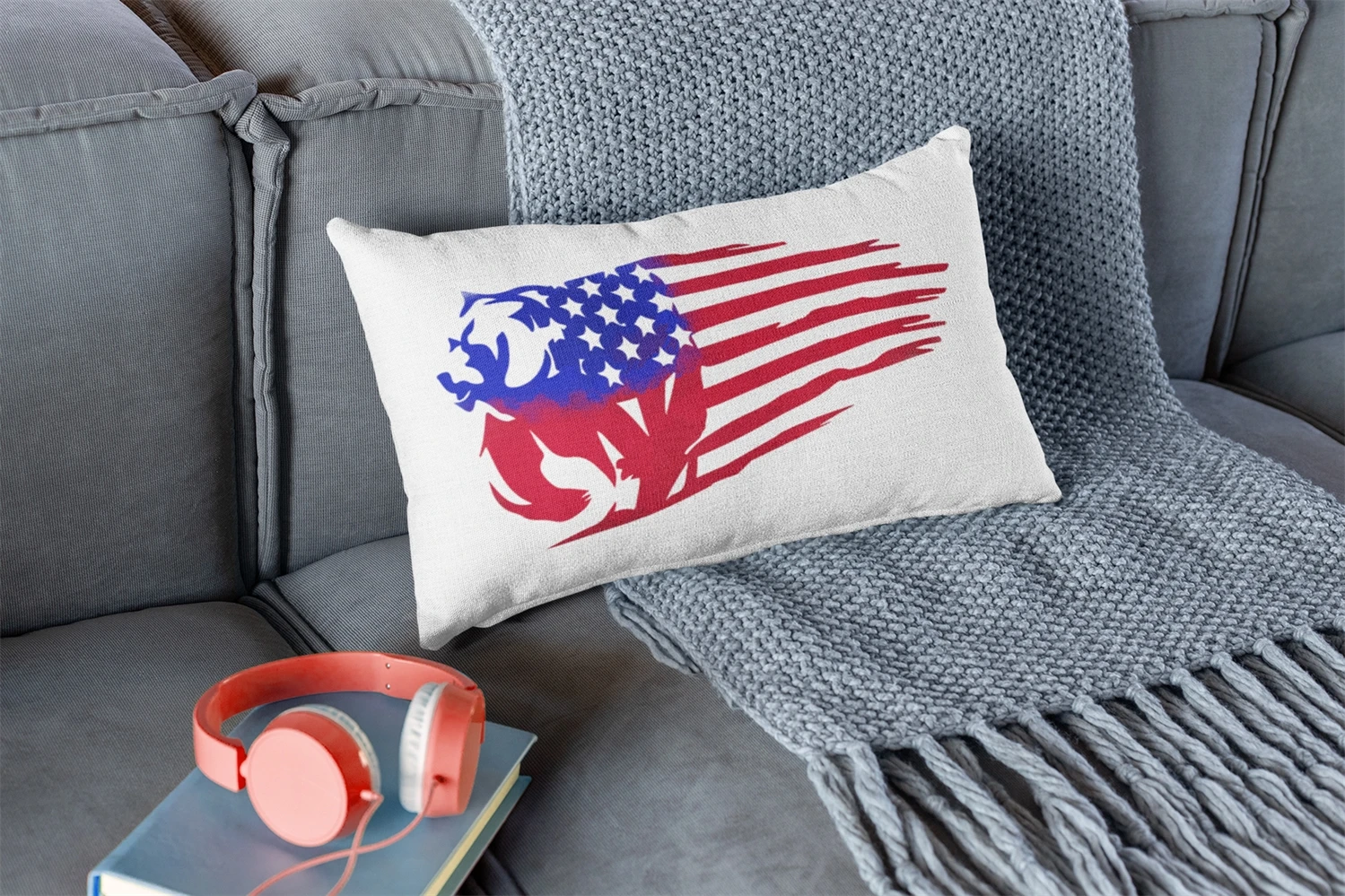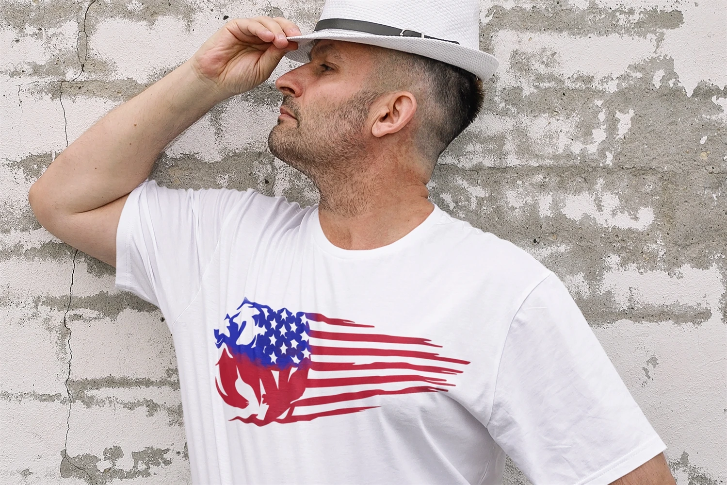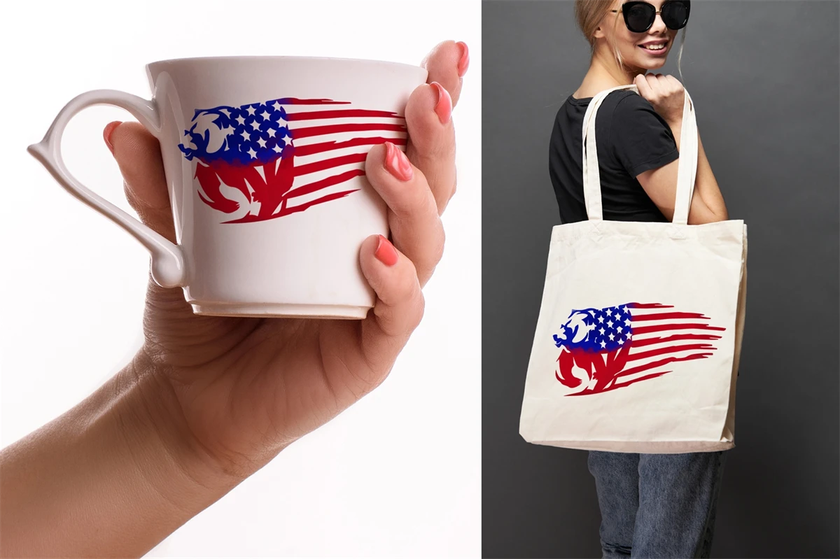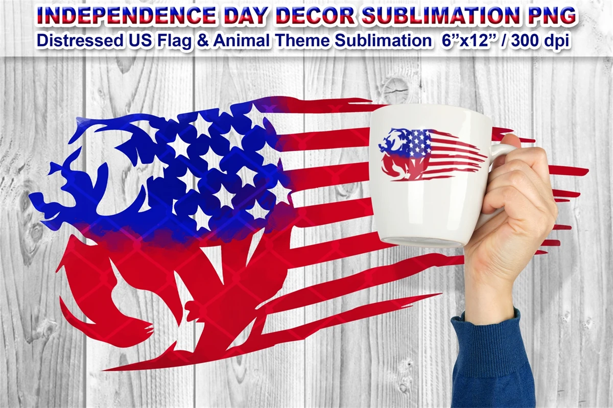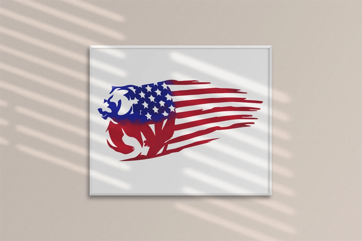 Watercolor Style Distressed US Flag with Animal Theme (Bear) Sublimation Clipart