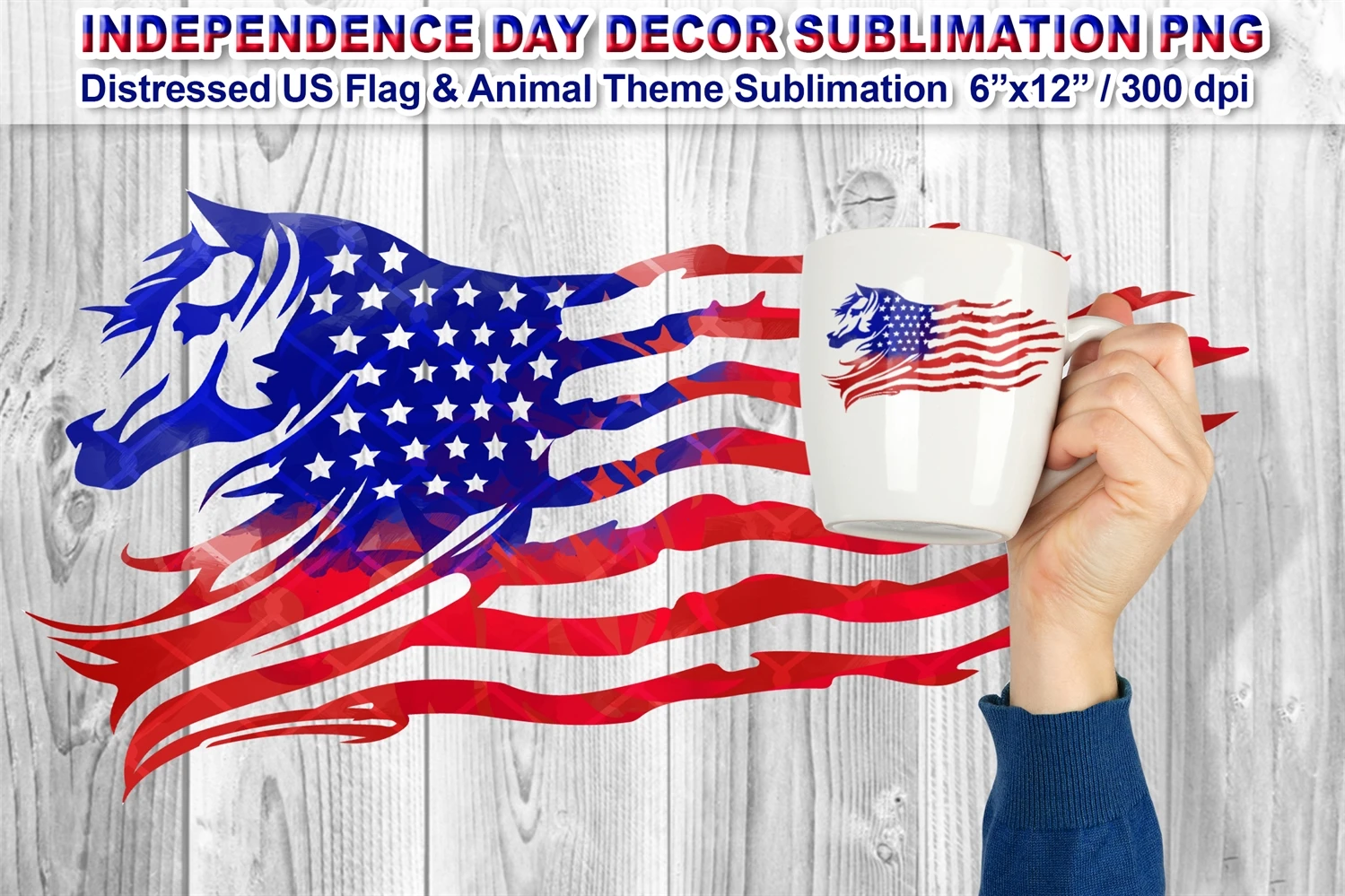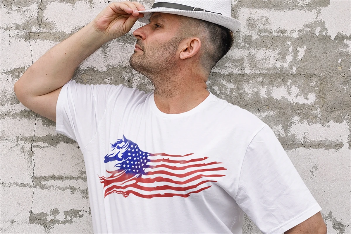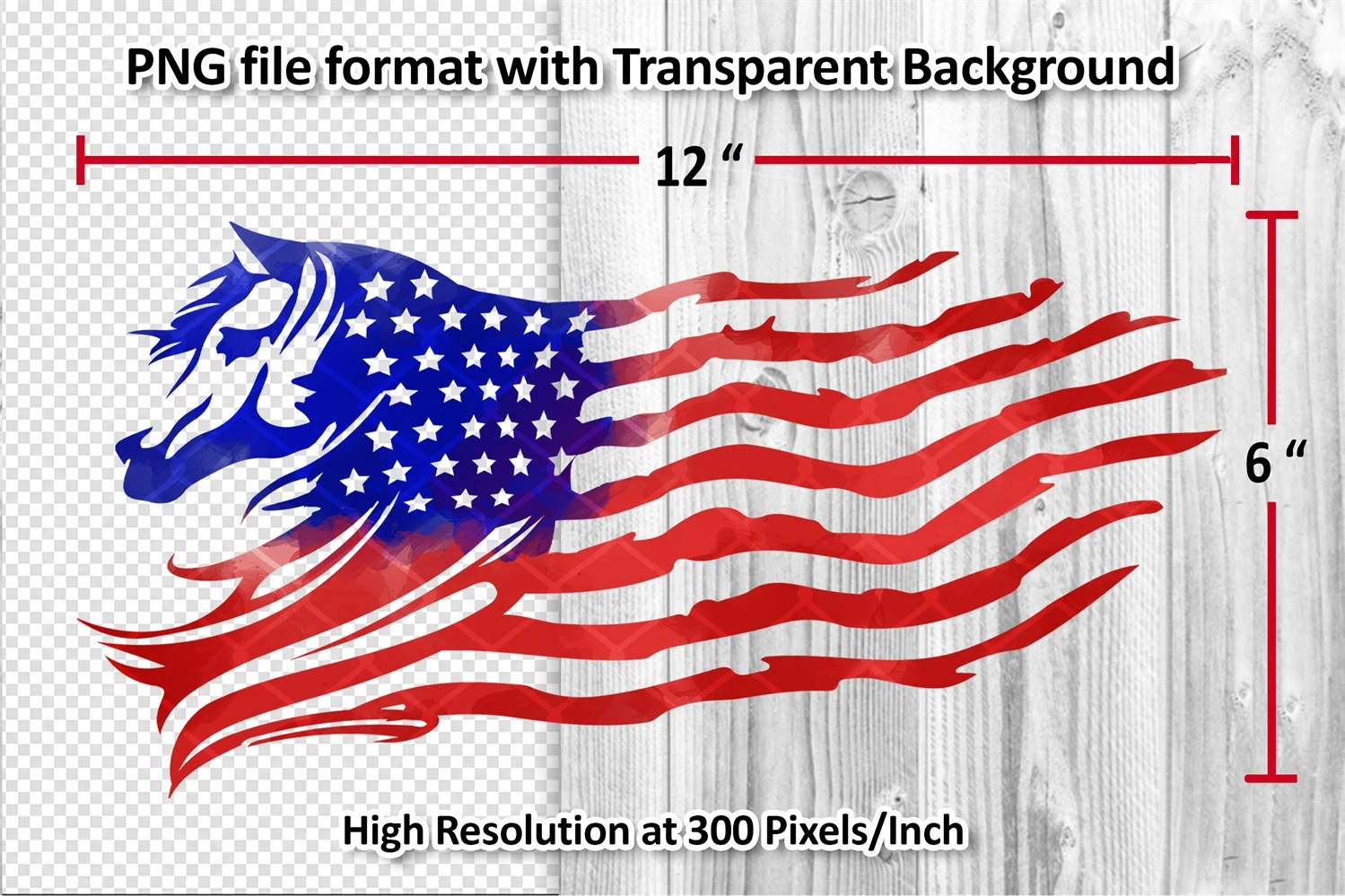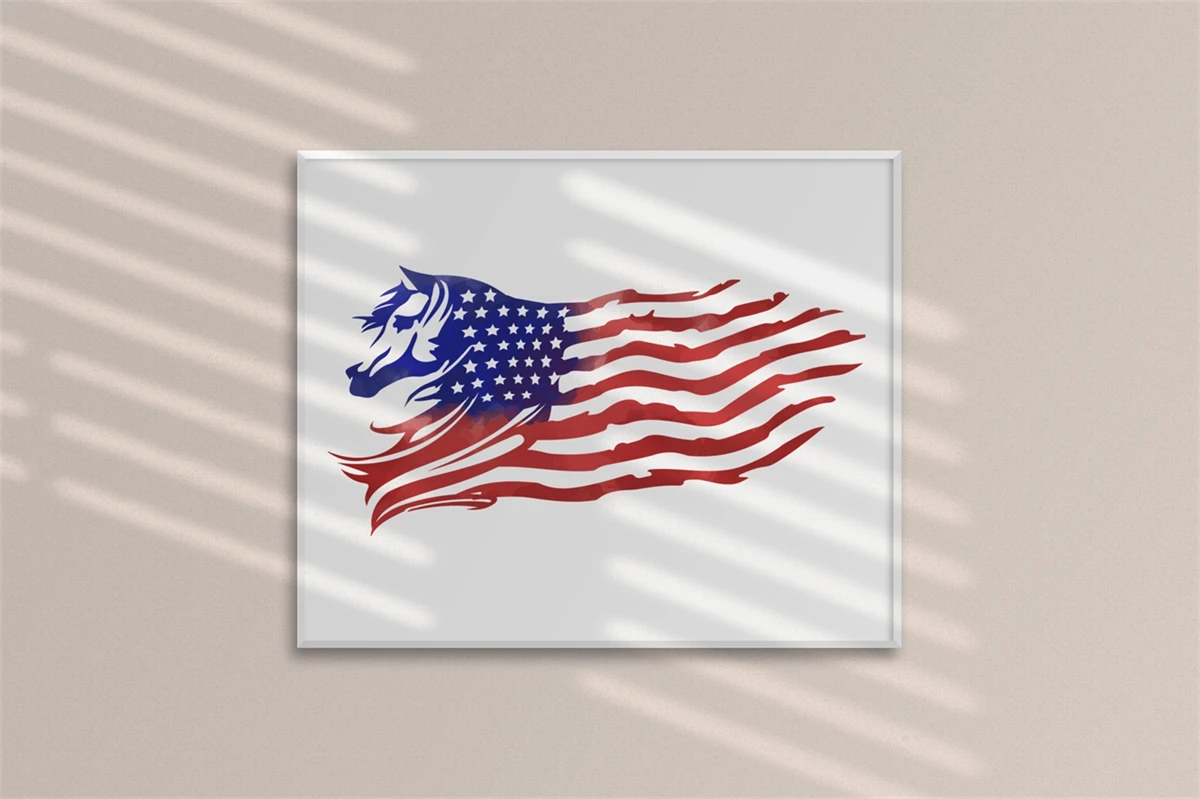 Watercolor Style Distressed US Flag with Animal Theme (Horse) Sublimation Clipart