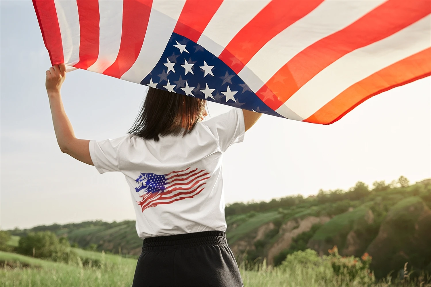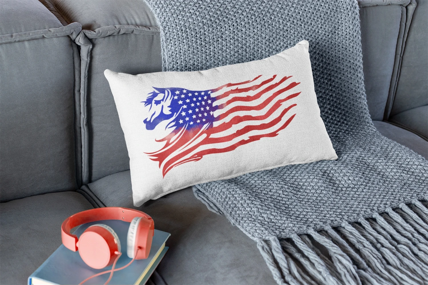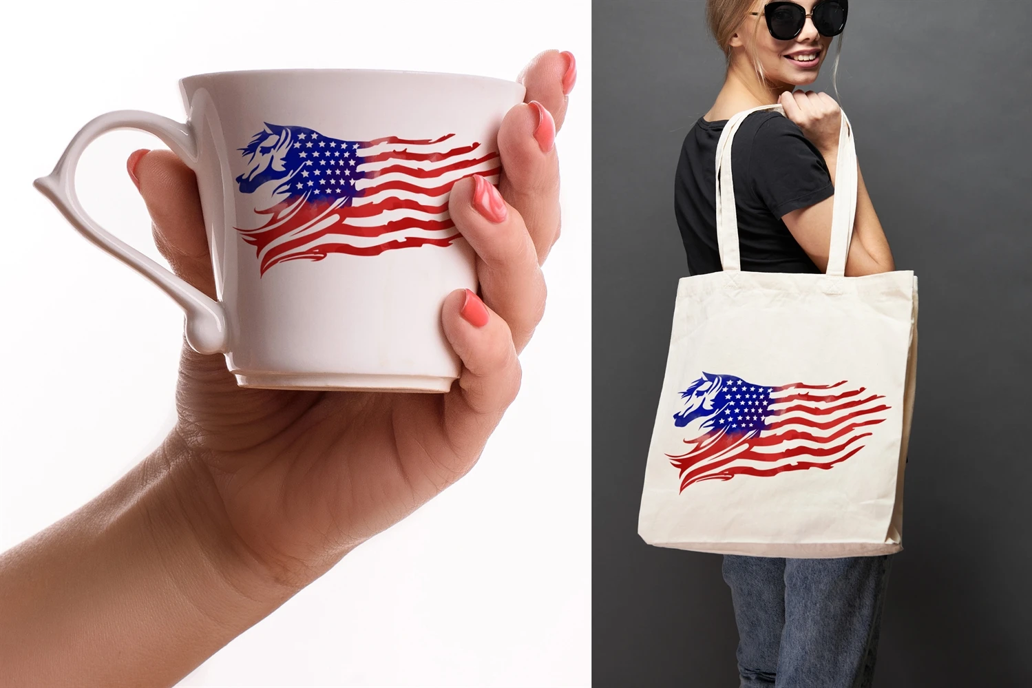 Watercolor Style Distressed US Flag with Animal Theme (Horse) Sublimation Clipart