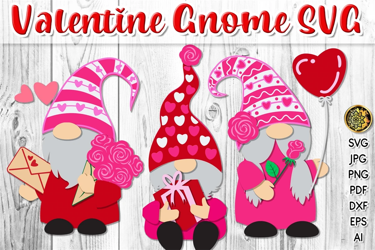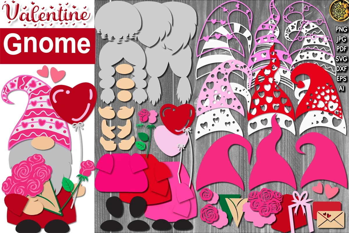 Happy Valentines Day with Cutest Gnomes that you can make yourself! New design of all Valentines elements, Roses Bouquet, Love Rose, Love Letter, Heart Balloon, and Valentine Gift.