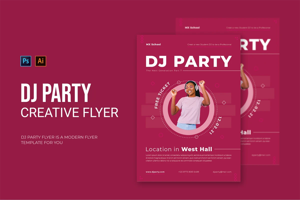 DJ Party - Flyer. This Flyer template is designed for your company's business needs. very clean and elegant, and also easily edited and adjusted to your liking