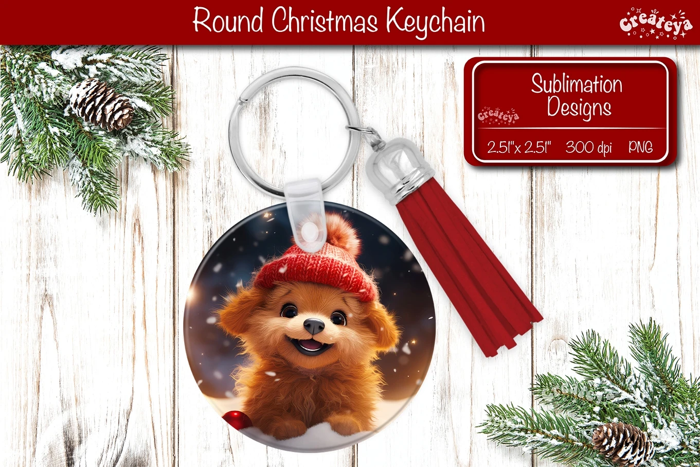 Christmas keychain sublimation designs with cute Christmas Baby Animals print Round Keychain PNG. Christmas Sublimation Round Keychain Perfect as a delightful gift.