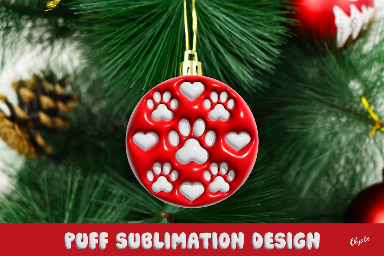 Dog Christmas Ornament. 3D Inflated Puff Sublimation