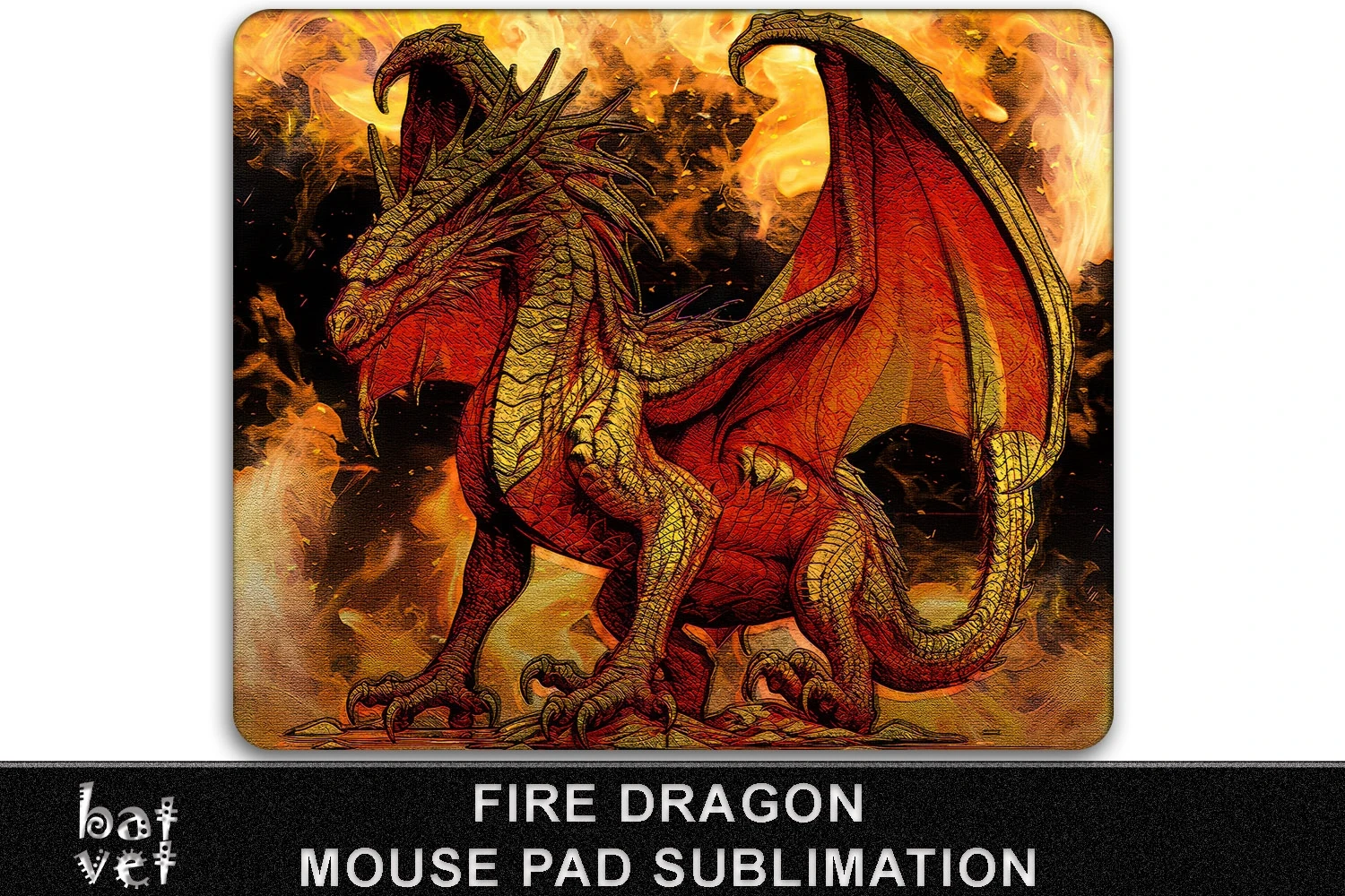 Mouse Pad Design, Fire, red Dragon Sublimation.