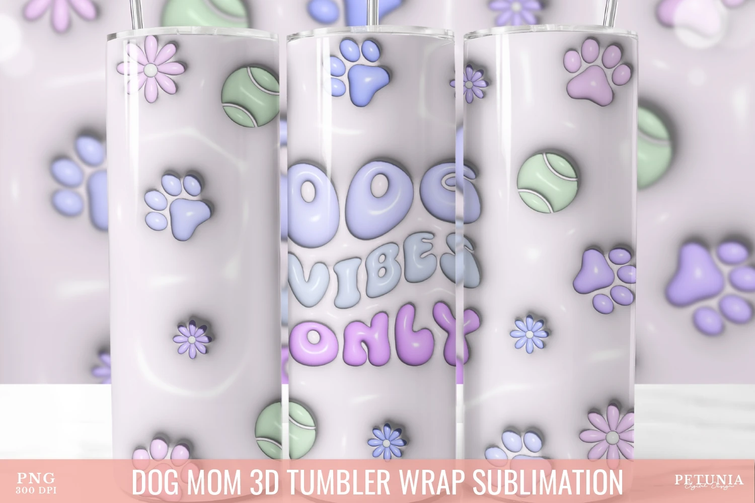 Dog Mom 3D Inflated Tumbler, 3D Sublimation Tumbler Wrap