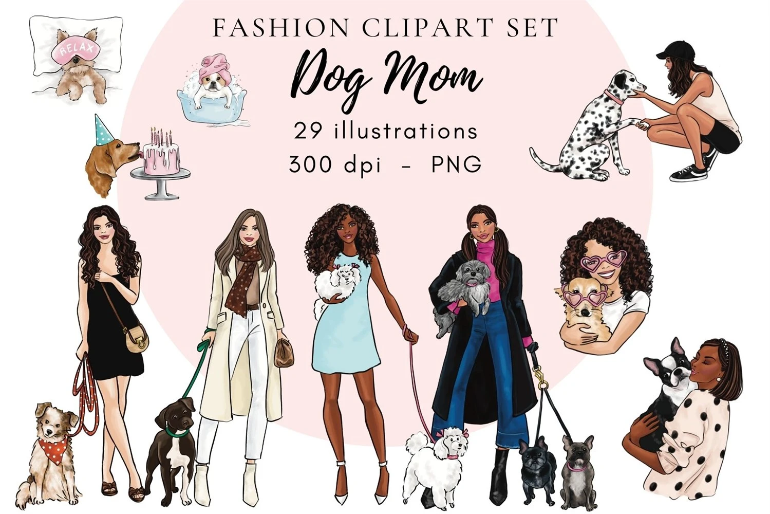 This Fashion Clipart Set consists of illustrations individually hand drawn and coloured by me on the iPad. Each illustration is in PNG format with a transparent background with clean edges so that they can be overlapped or placed on any colour background.