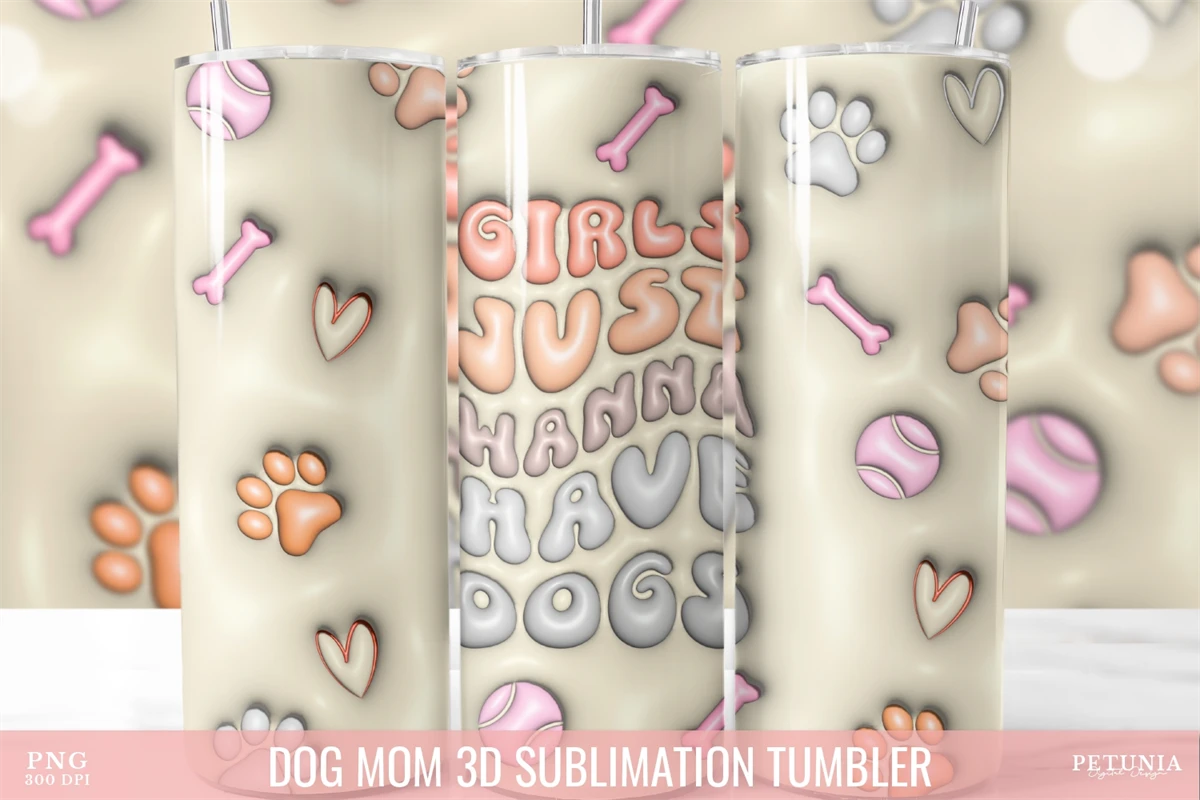 Dog Mom Inflated Tumbler, 3D Sublimation Tumbler Wrap