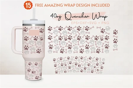 Dog Paw 40oz Quencher Tumbler, Dog Lover, Dog Mom