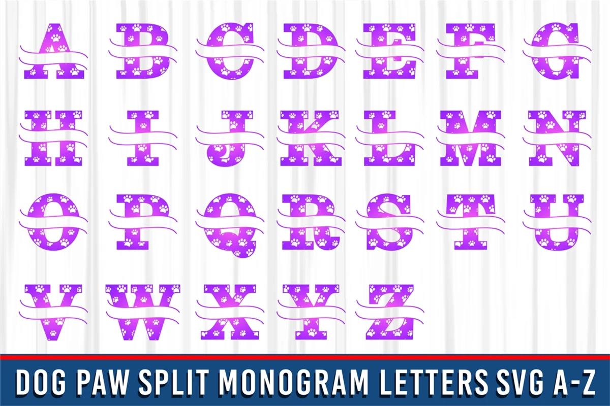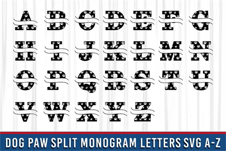 Dog Paw Split Monogram Letters SVG, Split Alphabet SVG
