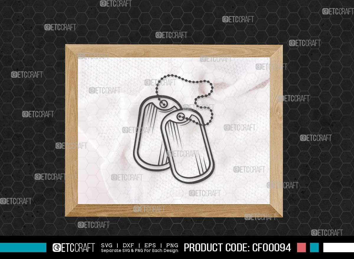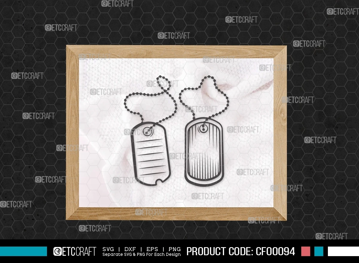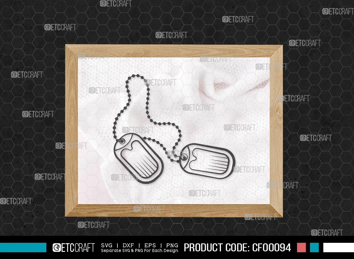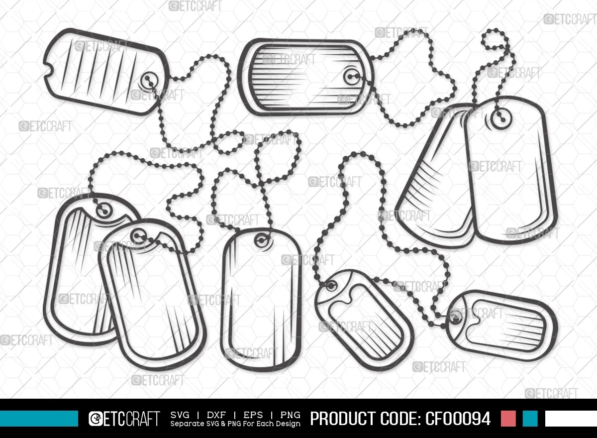 Salute the brave with our Dog Tags Army Outline Military Dog Tags SVG Cut File Bundle. Show appreciation to the courageous soldiers with these emblematic designs perfect for honoring their sacrifice and dedication.