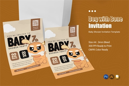 **Dog with Bone Baby Shower Invitation**