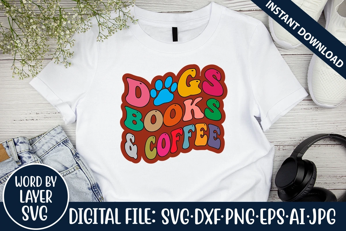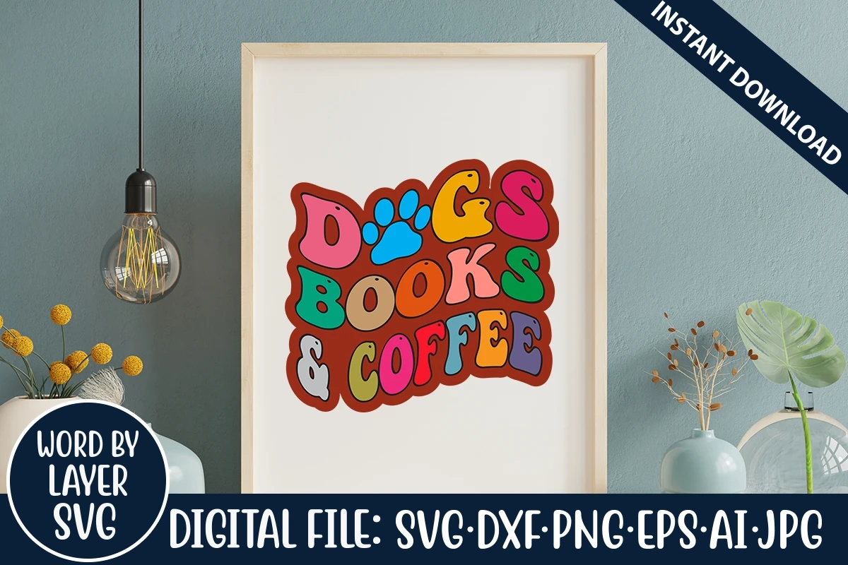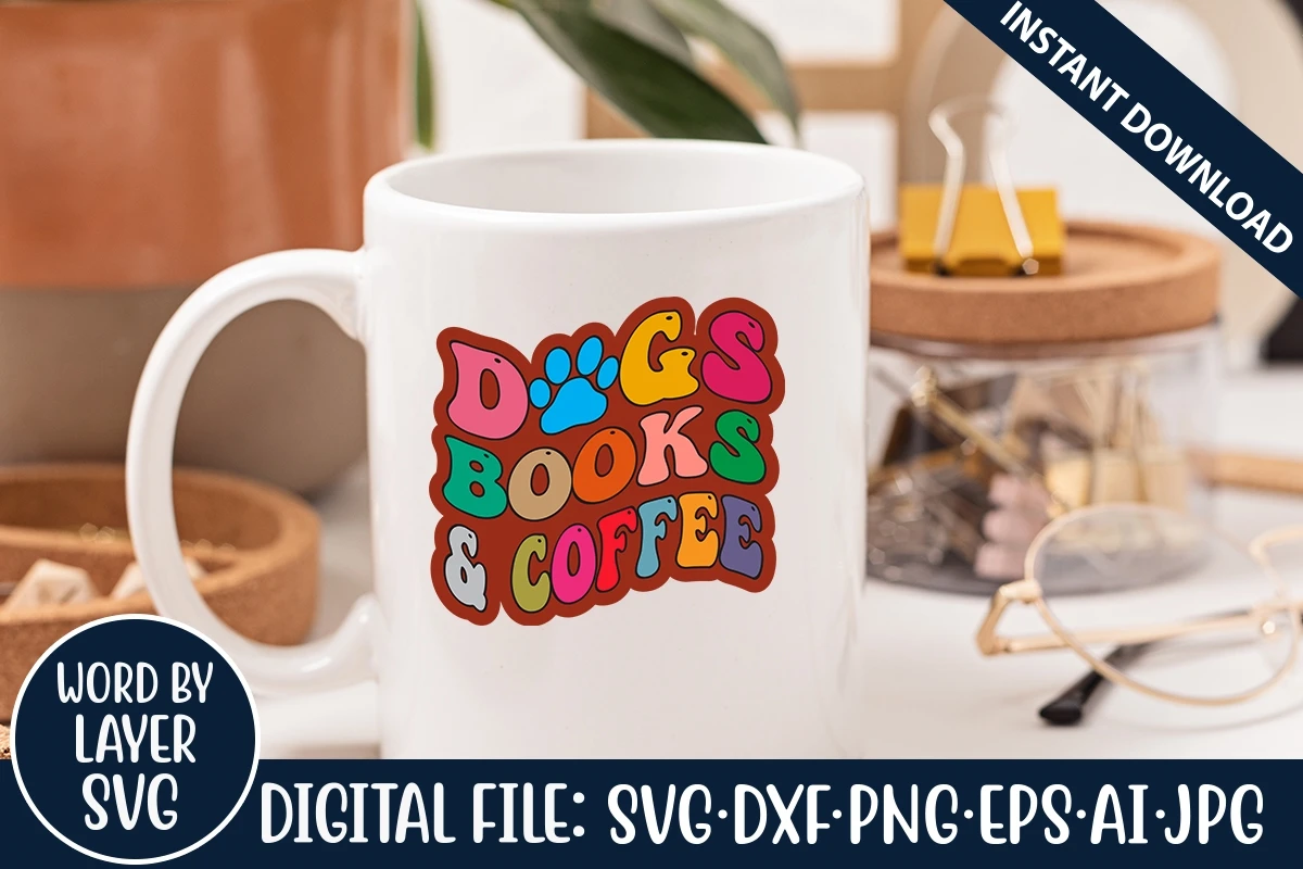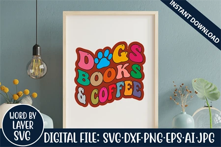 Dogs Books And Coffee Retro SVG Design, SVG Cut Files