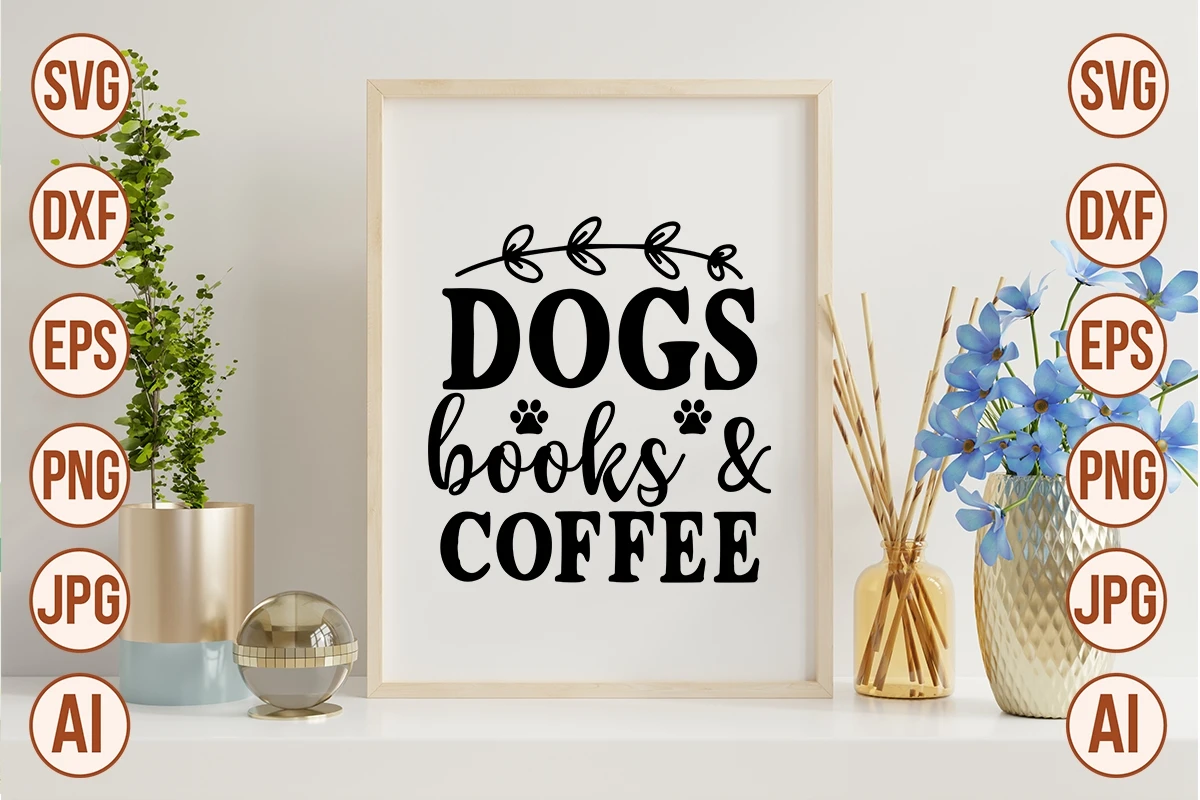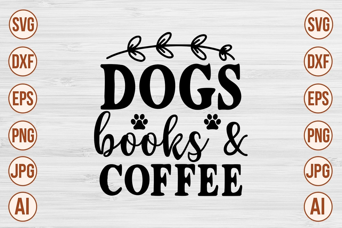 Dogs Books & Coffee SVG Cut File