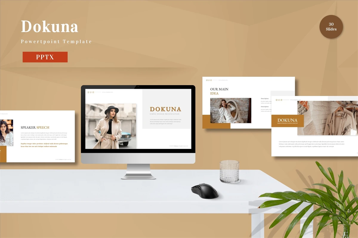 Get it now! **Dokuna - Powerpoint Template** for All Business and Personal Needs All elements on this template are editable; input your content, replace your image with a placeholder, change the color, and all presentations include an animated slide to present your slides.