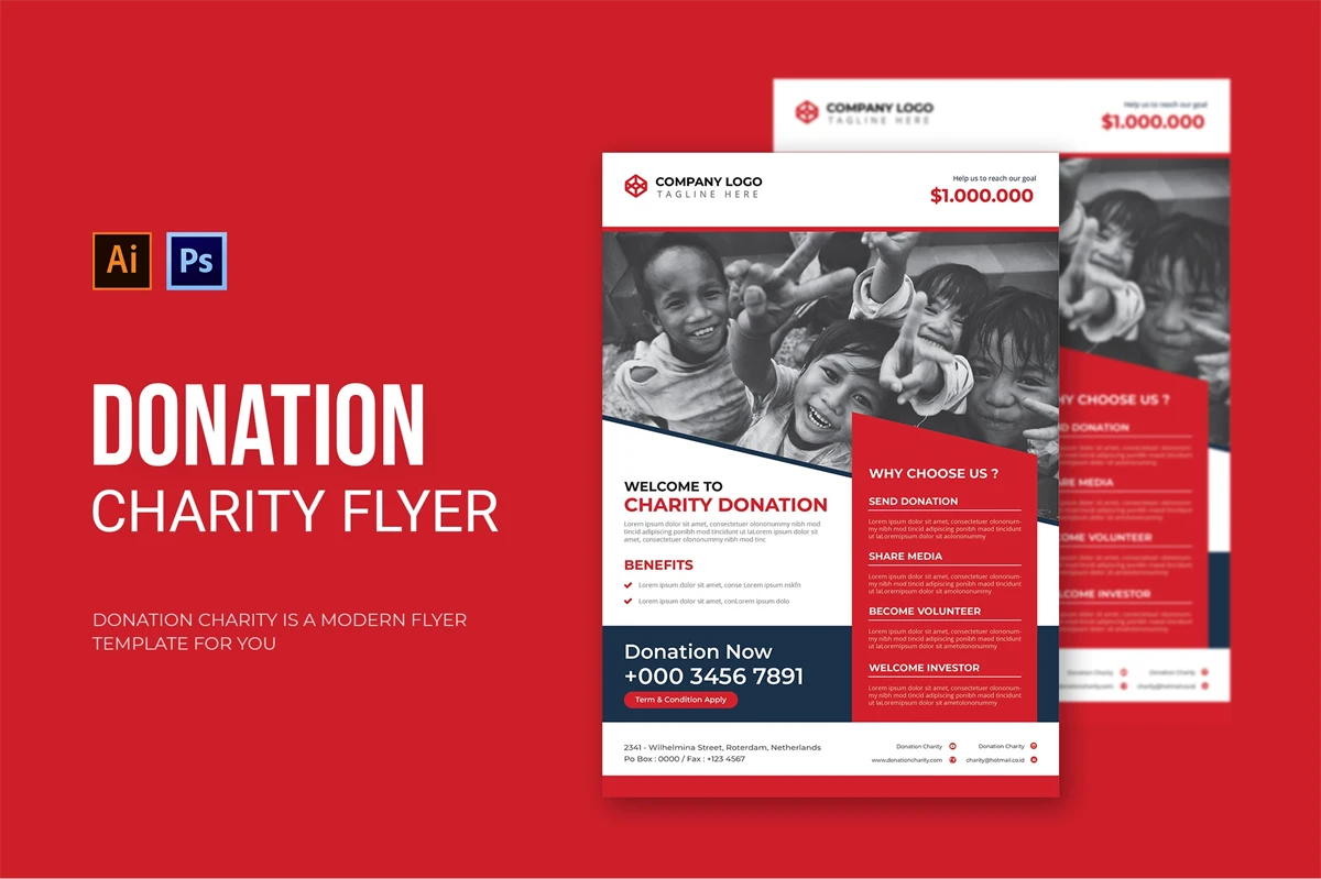 Donation Charity - Flyer. This Flyer template is designed for your company's business needs. very clean and elegant, and also easily edited and adjusted to your liking