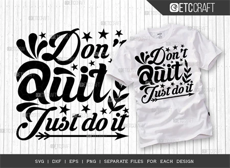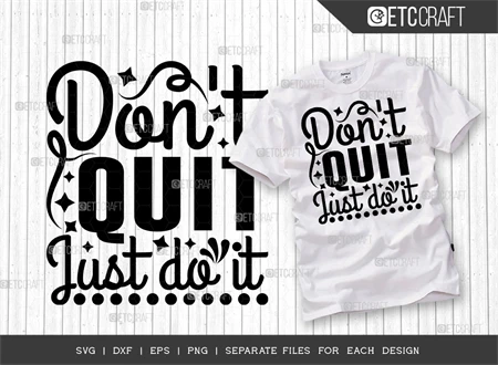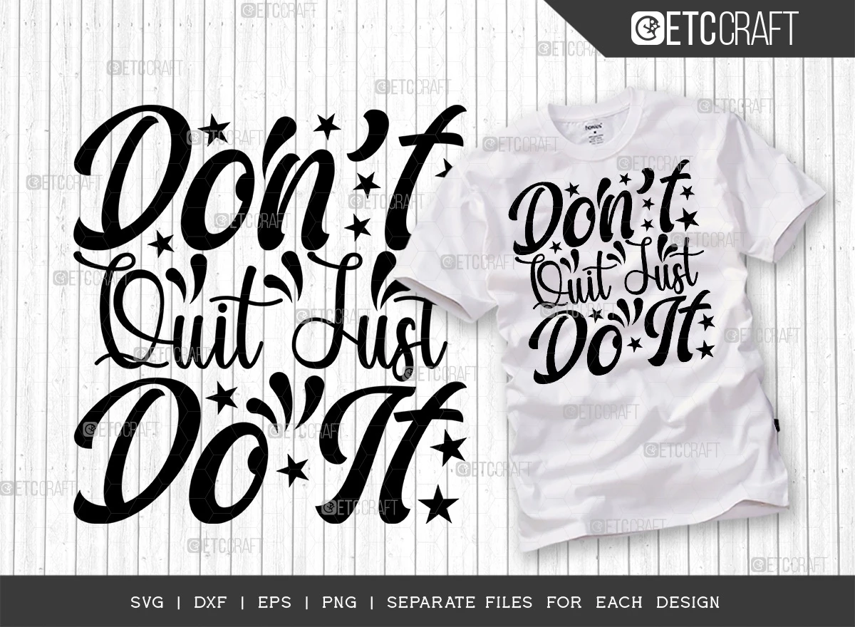 The "Don't Quit Just Do It" SVG Bundle T-Shirt Design features a captivating and original artwork that is sure to turn heads. Its bold typography and dynamic graphics convey a powerful message, making it perfect for those who want to make a strong impression.