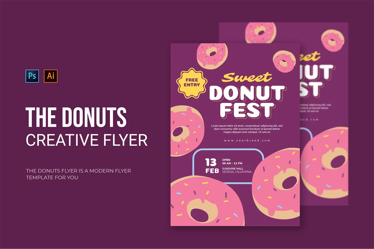Donut and Ice Cream - Flyer. This Flyer template is designed for your company's business needs. very clean and elegant, and also easily edited and adjusted to your liking