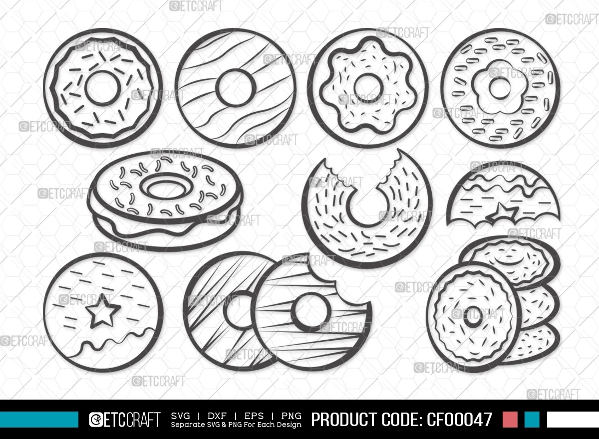 Indulge in the sweetness of creativity with our "Donut Outline Sprinkle Bakery Dessert" SVG cut file bundle. Transform your projects into a delectable bakery wonderland adorned with delightful donut outlines and sprinkles.