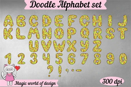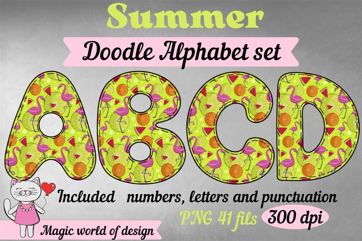 Doodle summer Flamingo Alphabet Numbers png, sublimation