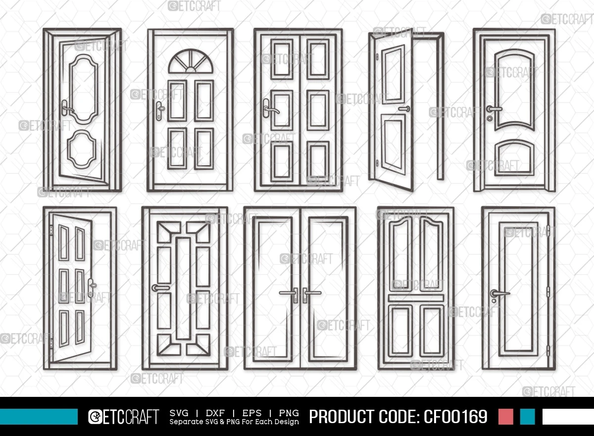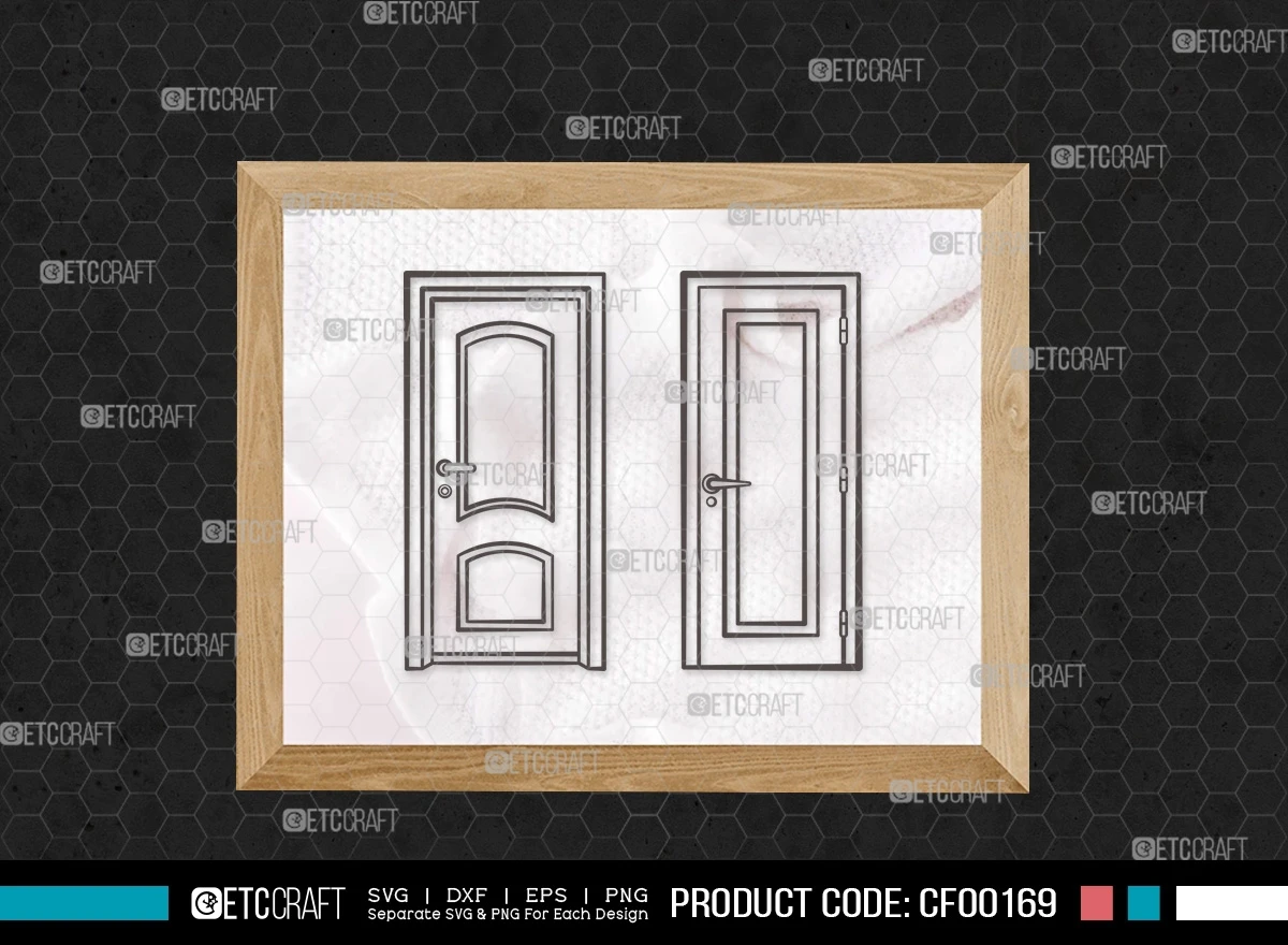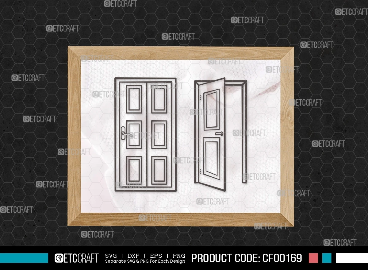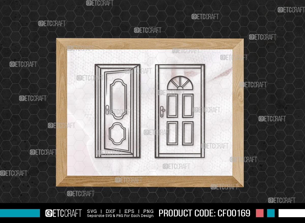 Enhance your creative projects with our Door Outline Open Front House Door-Window Frame SVG Cut File Bundle. This digital collection features meticulously designed SVG, DXF, EPS, and PNG files, showcasing precise door and window frame designs. Perfect for adding a unique touch to your projects, this bundle is a must-have for any creative enthusiast.
