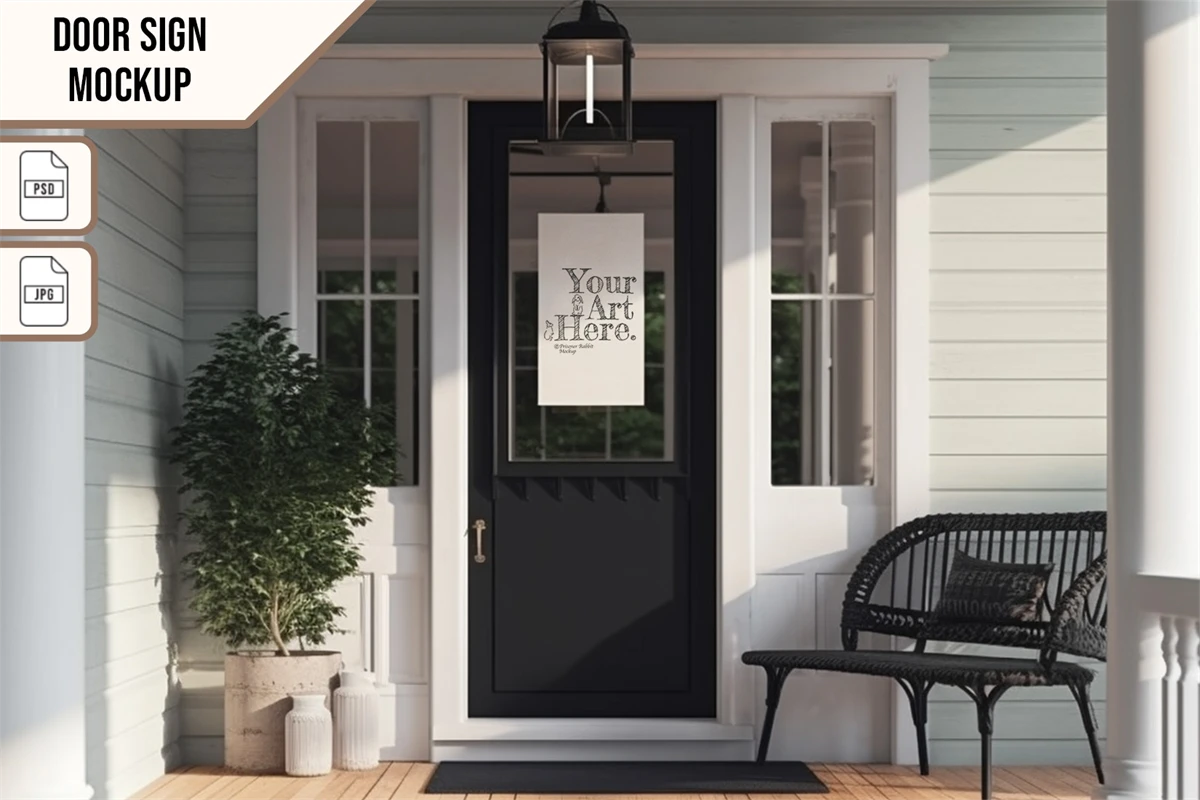Door Sign, front door sign smart mockup with Photoshop (PSD) template for logo design, sublimation, art and graphic designs