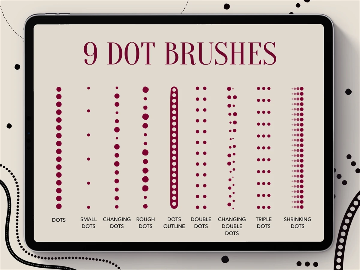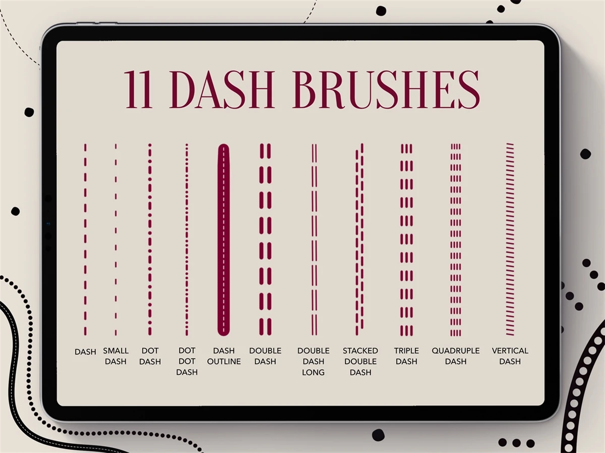 Create stunning artwork with the Dots and Dashes Brush Set! Featuring 20 unique dot and dash brushes for Procreate on iPad, these custom-made border brushes are the perfect tool for bringing your creative vision to life. Unlock your artistic potential and create beautiful designs with ease!