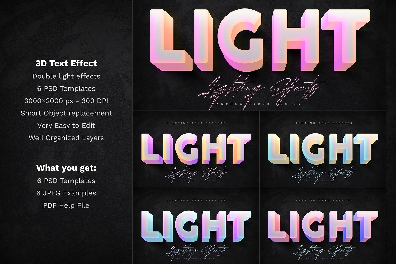 You can use these 6 Photoshop templates for making cool retro lettering for posters, social media, video titles, Instagram and Facebook, promo, ads and more!