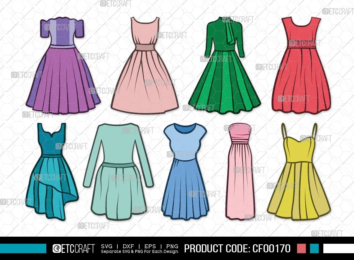 Explore the potential of the Dress Clipart Women's Wedding Long Gown Dresses SVG Cut File Bundle and elevate your design projects. Download now to bring sophistication and elegance to your creative endeavors and make a lasting impression in the world of fashion and design!