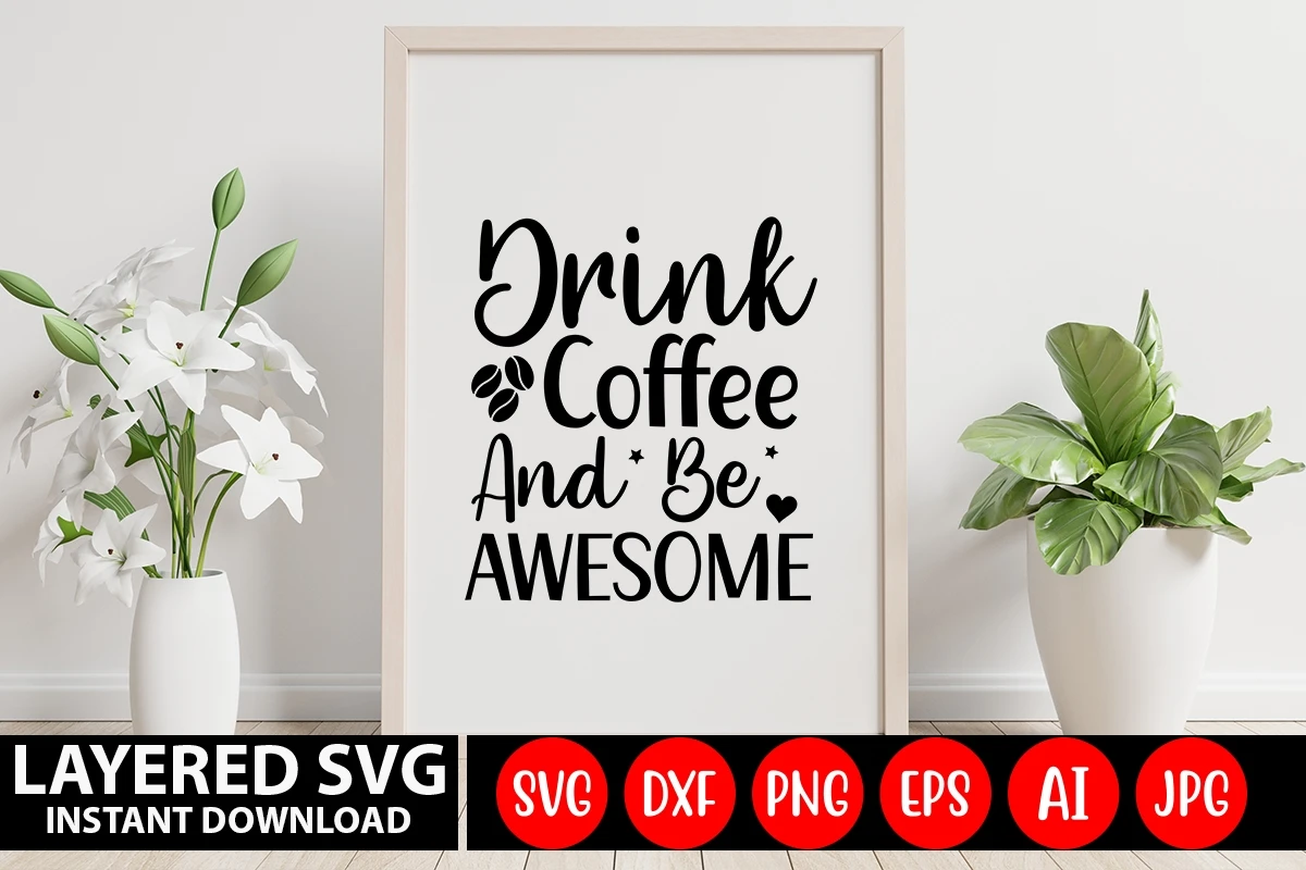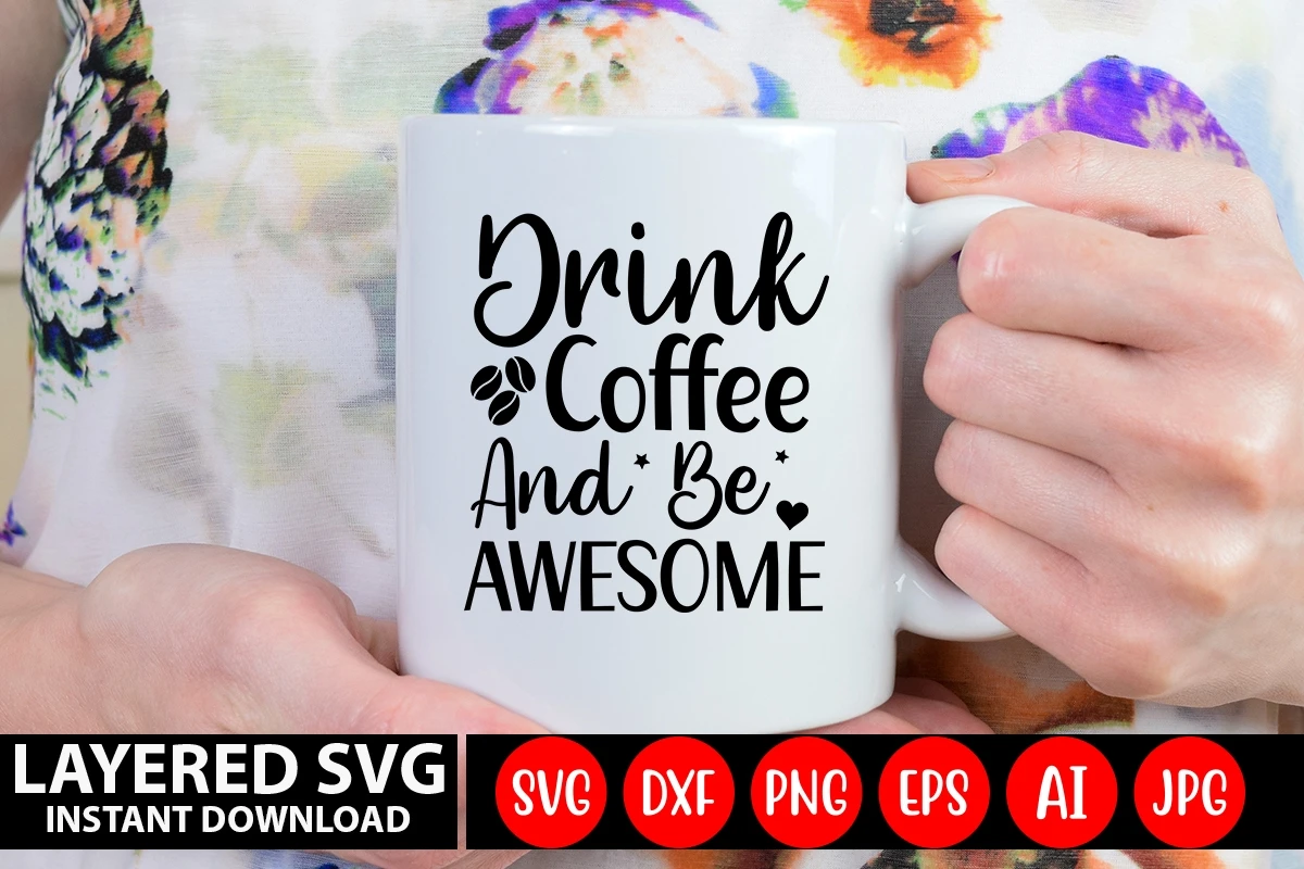 Drink Coffee And Be Awesome SVG Design, SVG Cut File