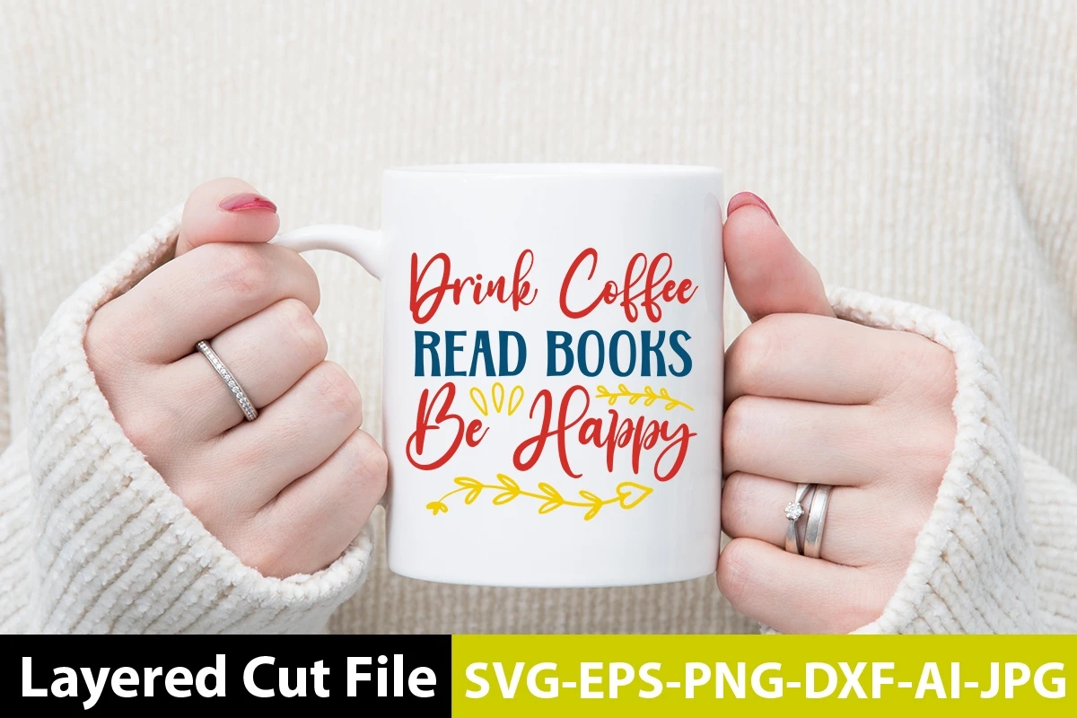 Drink Coffee Read Books Be Happy SVG Design
