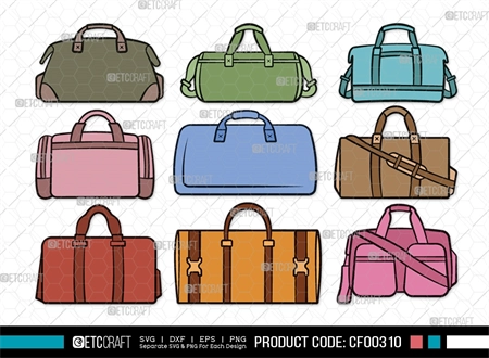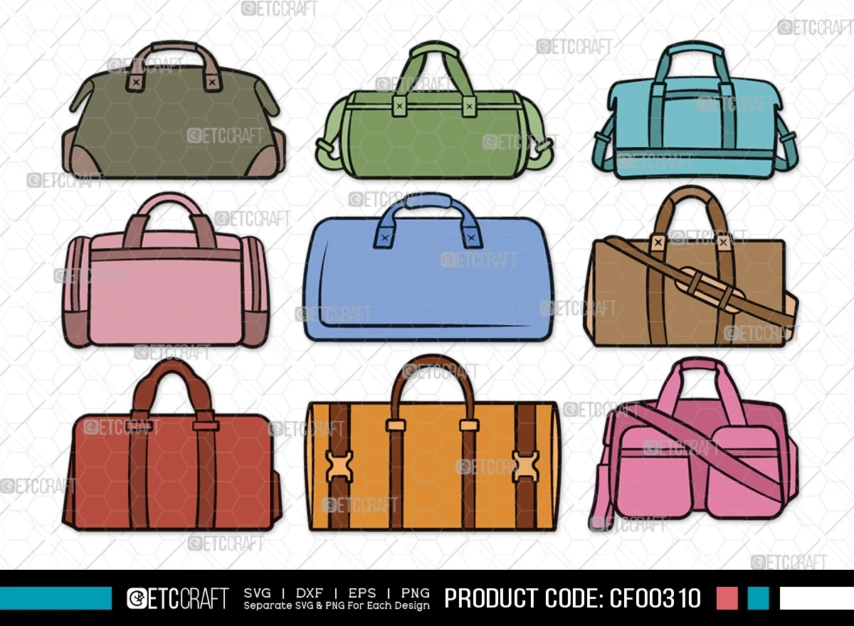 Enhance your sports and travel-themed design projects with our Duffel Bag Clipart Sports and Travel Carrier SVG Cut File Bundle. These realistic and versatile designs will add a touch of style and functionality to your work, whether it's for travel brochures, sports-related materials, or any creative endeavor related to carrying gear in style. Download now and let your creativity shine!