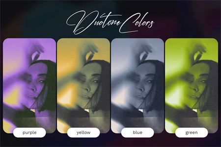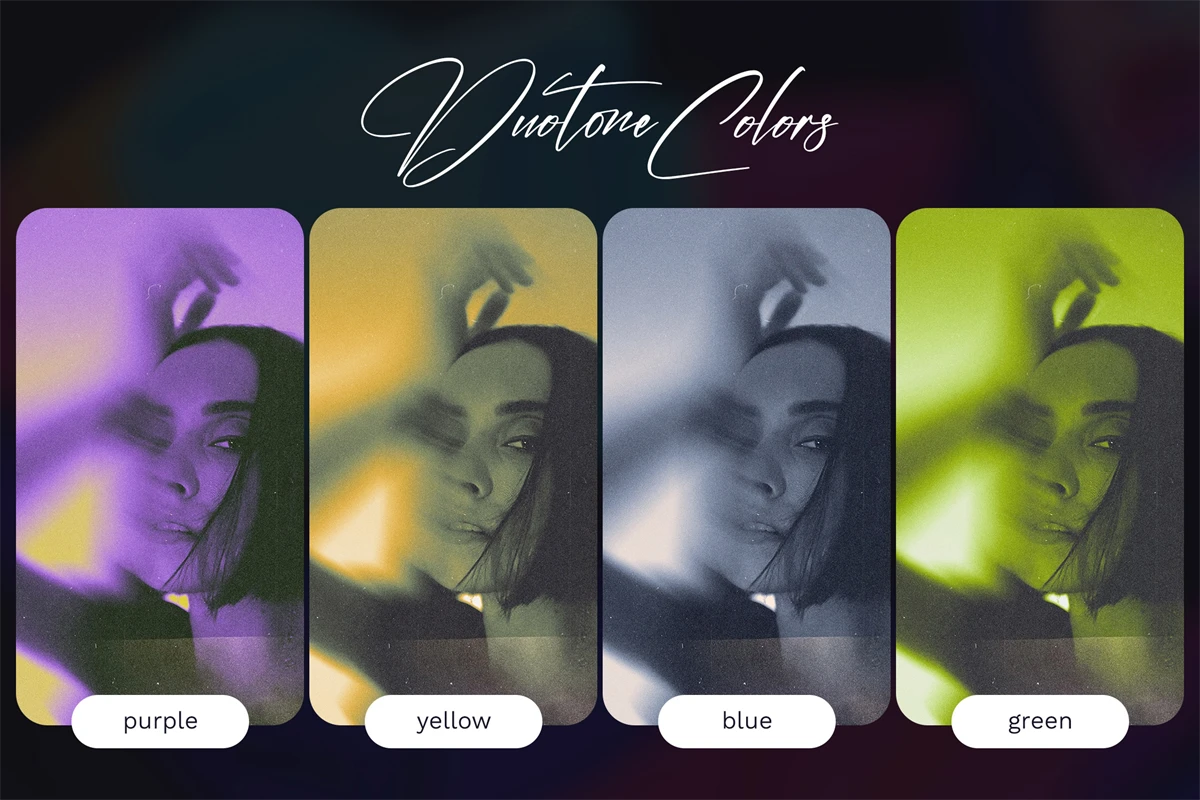 The template offers four different duotone color options to choose from, giving you the flexibility to create a variety of visual styles. Whether you're looking for a bold and vibrant look or a subtle and understated feel, this template has you covered.