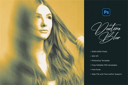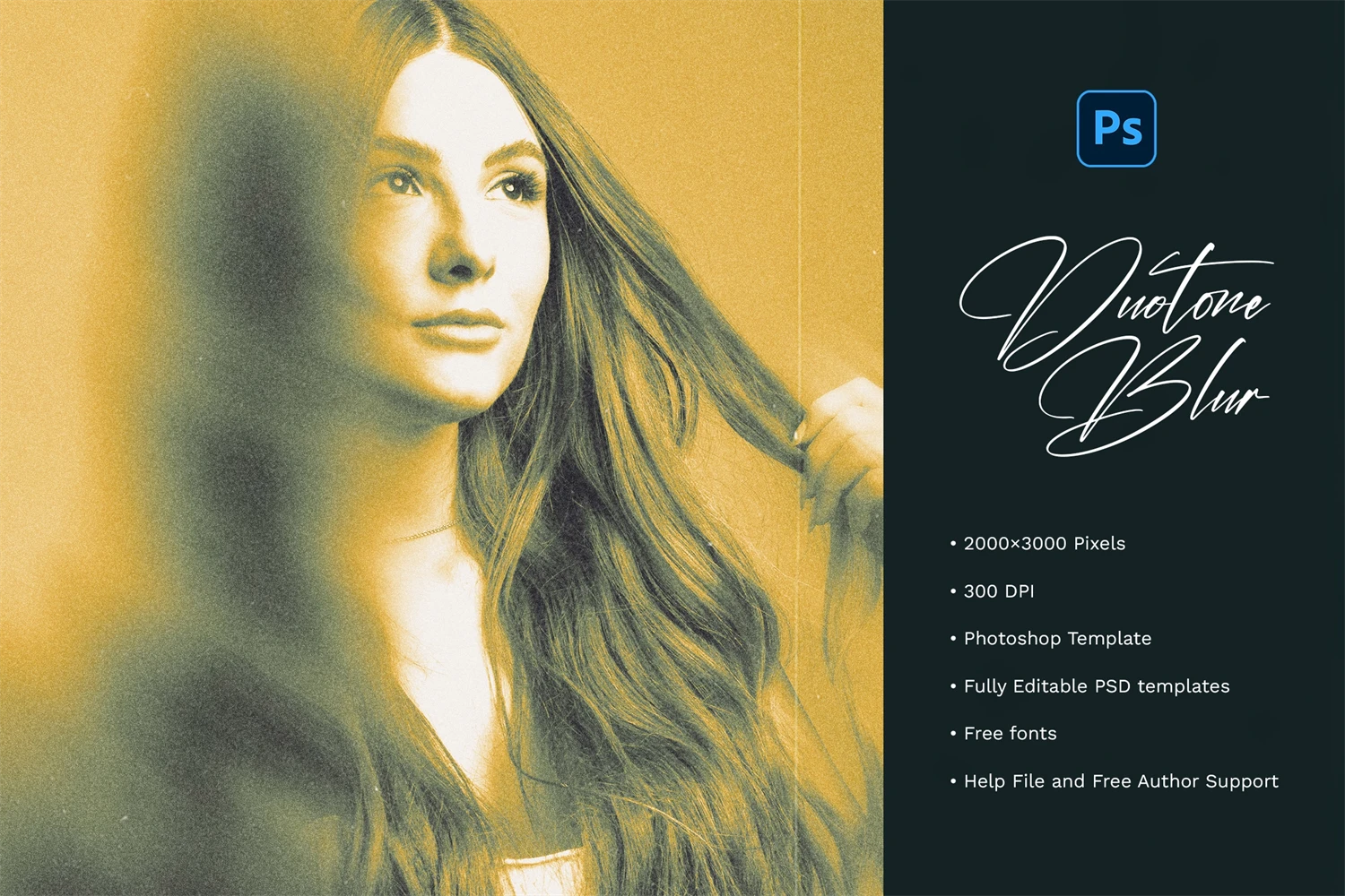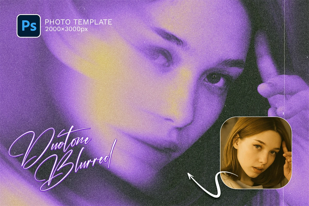 The "Duotone Blurred Photo Template" is a stylish and versatile PSD template designed for creating stunning posters and advertisements. With a resolution of 2000x3000 pixels in portrait mode, this template is ideal for high-quality prints and digital designs.