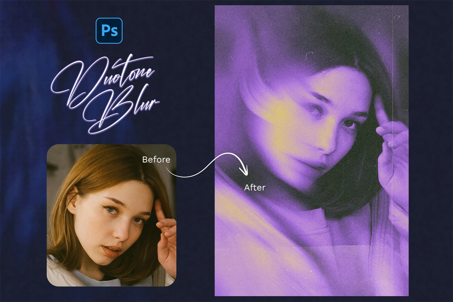 Overall, the "Duotone Blurred Photo Template" is a powerful tool for creating eye-catching posters and advertisements that are sure to grab attention. With its high-quality design and customizable features, this template is perfect for adding a touch of style and sophistication to your designs.