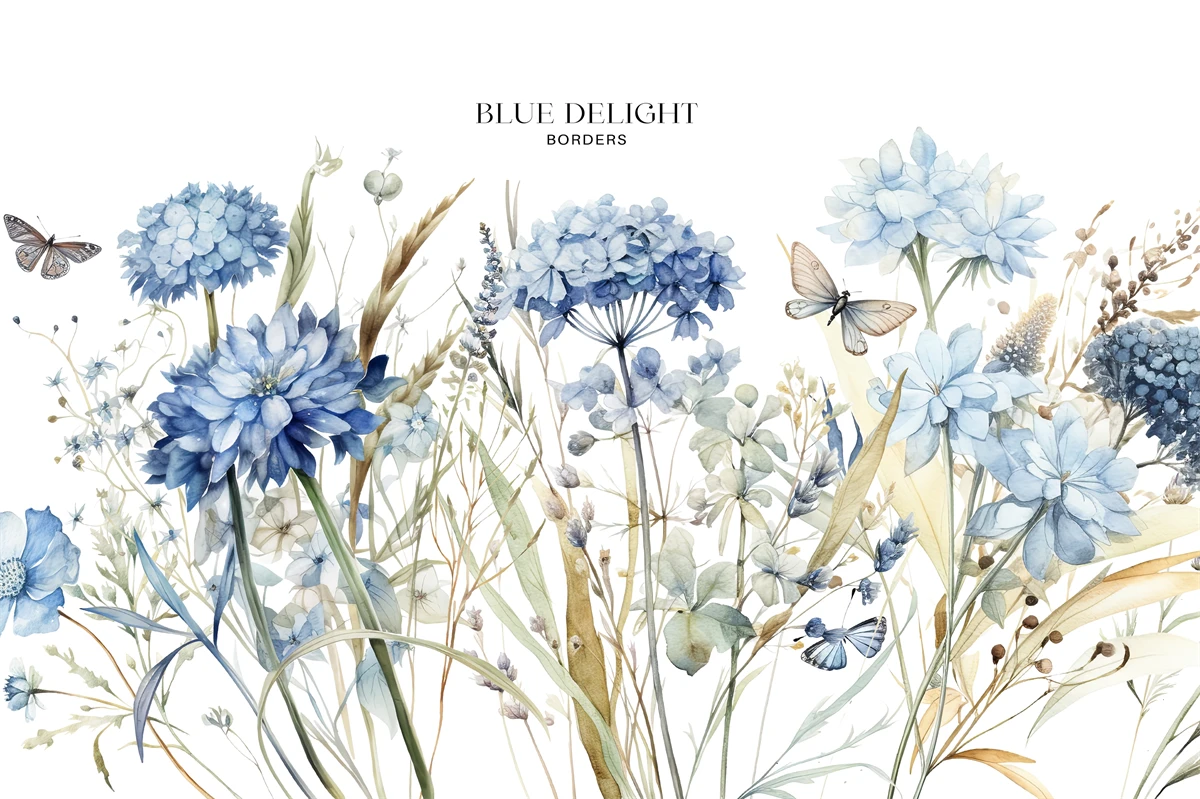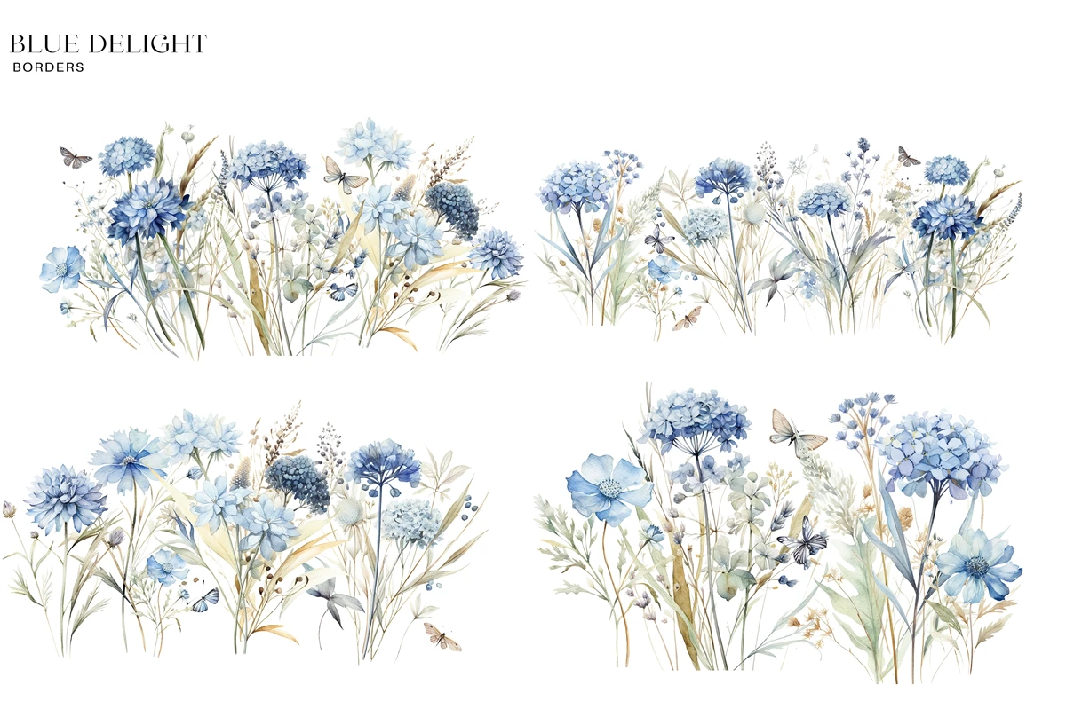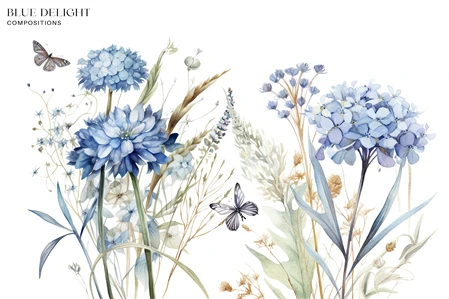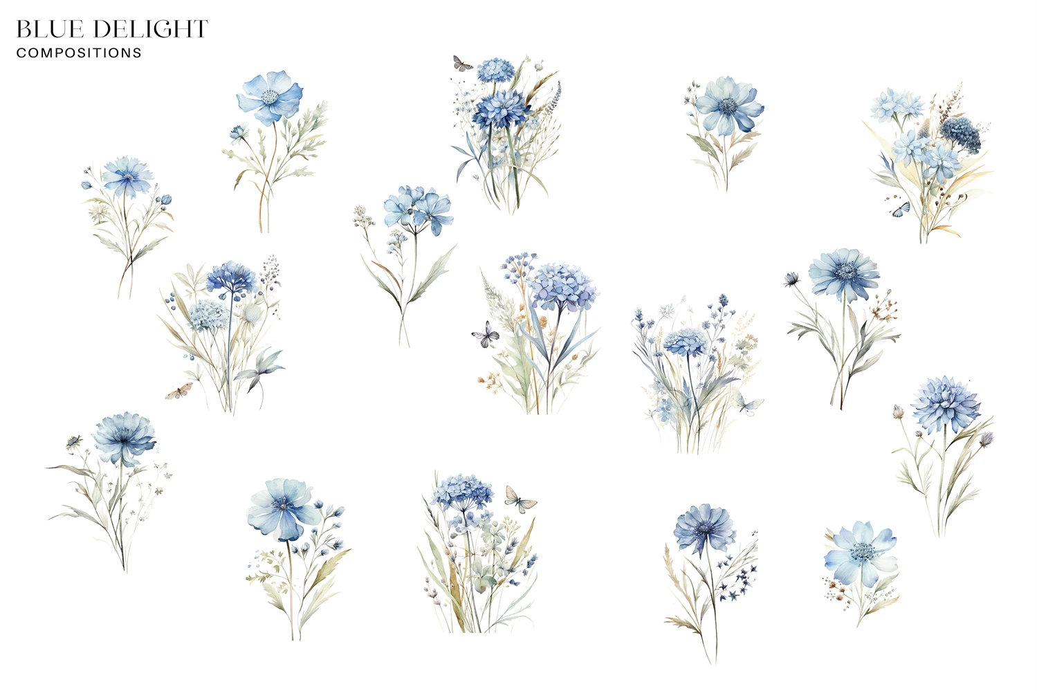 Immerse yourself in the serene beauty of a tranquil meadow with this captivating watercolor blue meadow flowers clipart set. Whether it's for nature-inspired artwork, wedding invitations, or soothing aesthetic creations, these enchanting meadow flowers will transport you to a world of calm and serenity.