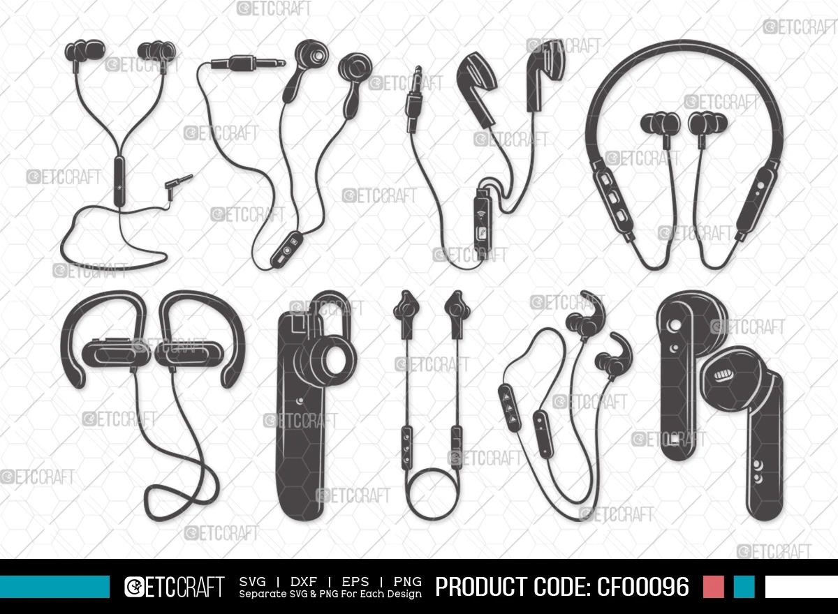 Whether you're a music aficionado, a tech-savvy designer, or someone who simply appreciates the artistry of earphones and music headsets, the Earphones Silhouette Music Headset SVG Cut File Bundle offers a versatile canvas for expressing your passion. Add the rhythm, style, and soul of music to your creative projects with this comprehensive bundle.