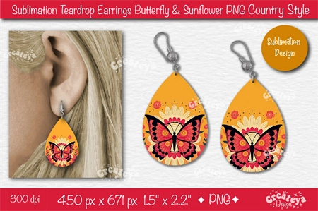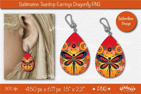 The teardrop earrings sublimation with Dragonfly is perfect for summer teardrop earrings. Country style Folk style Teardrop earring sublimation PNG.