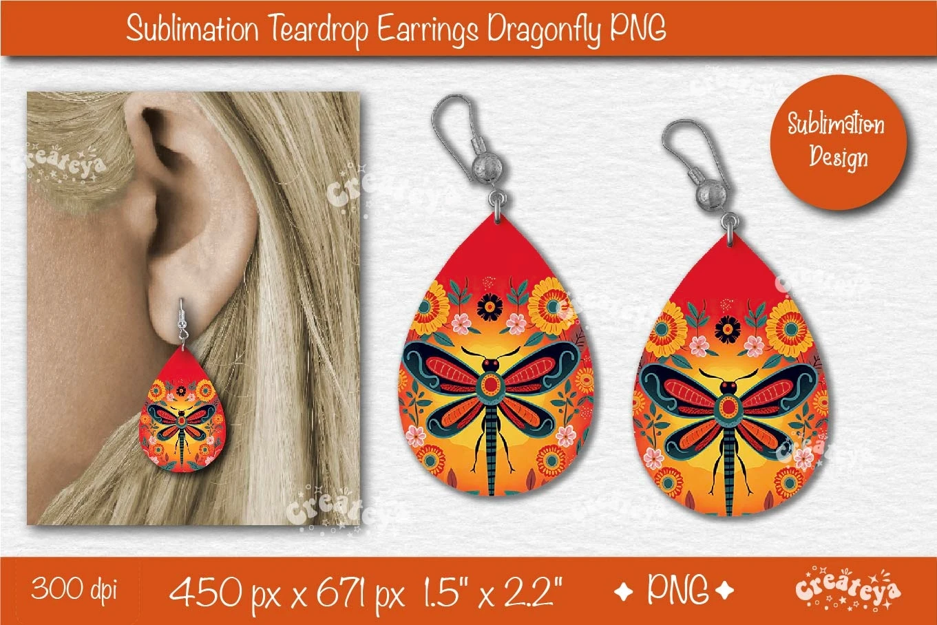 The teardrop earrings sublimation with Dragonfly is perfect for summer teardrop earrings. Country style Folk style Teardrop earring sublimation PNG.