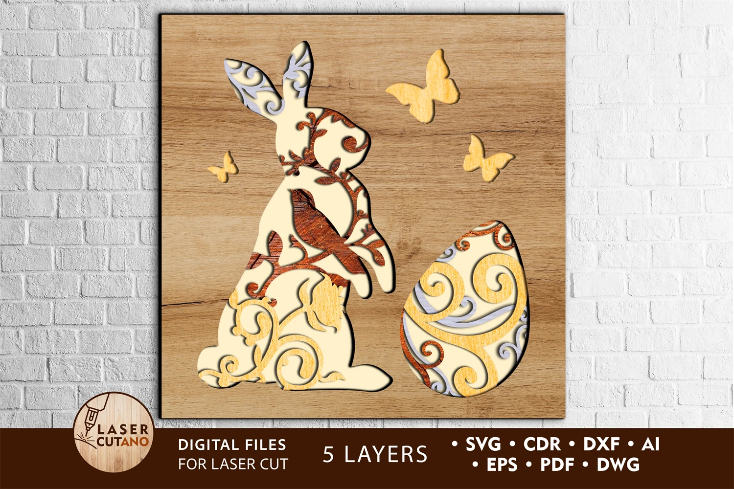 EASTER BUNNY Digital multilayer layout files are specially prepared for the laser cut, CNC router machine and other cutting machines.