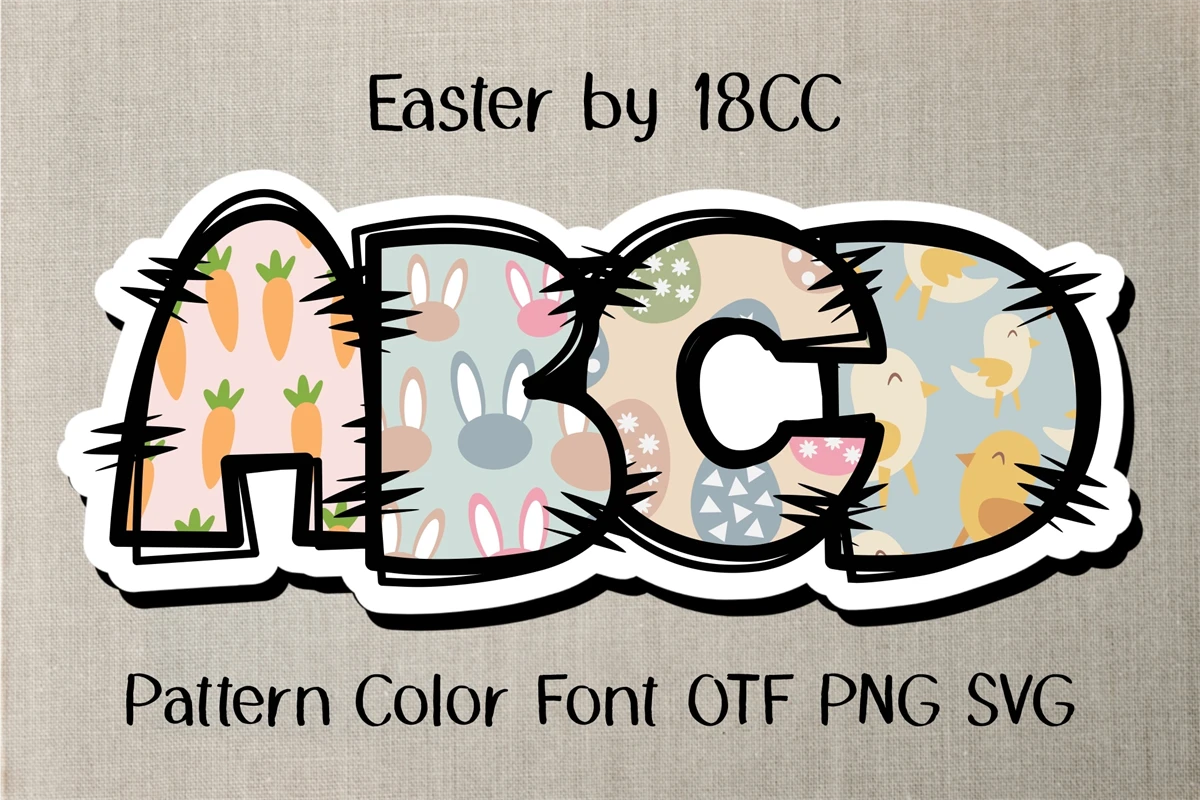 Easter is a Cute Colorful Pattern Font. This font is the perfect fit for all of your t-shirt, social media, crafty DIY projects, and much more!