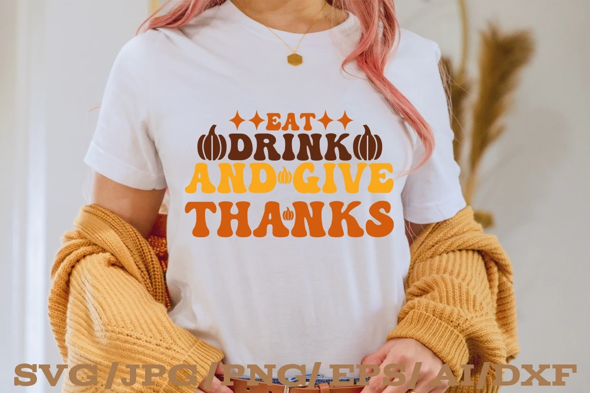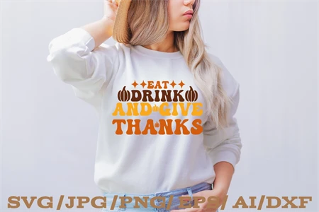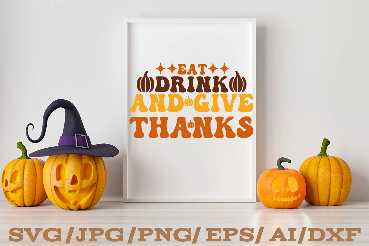 EAT DRINK AND GIVE THANKSL Retro Thanksgiving SVG Design