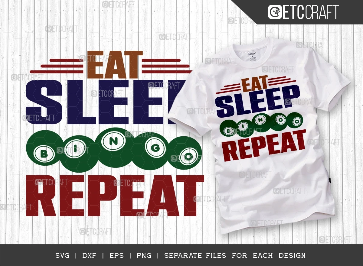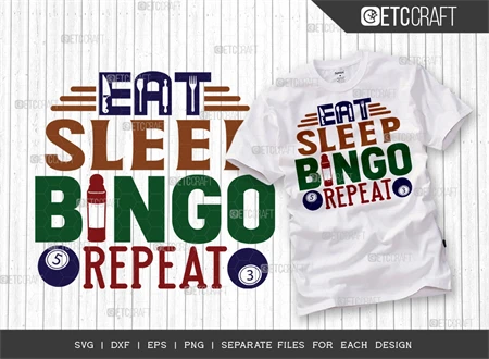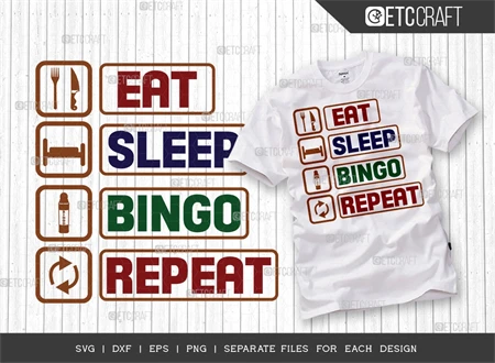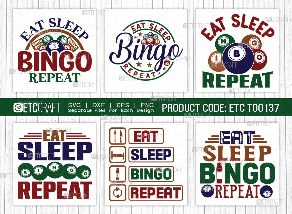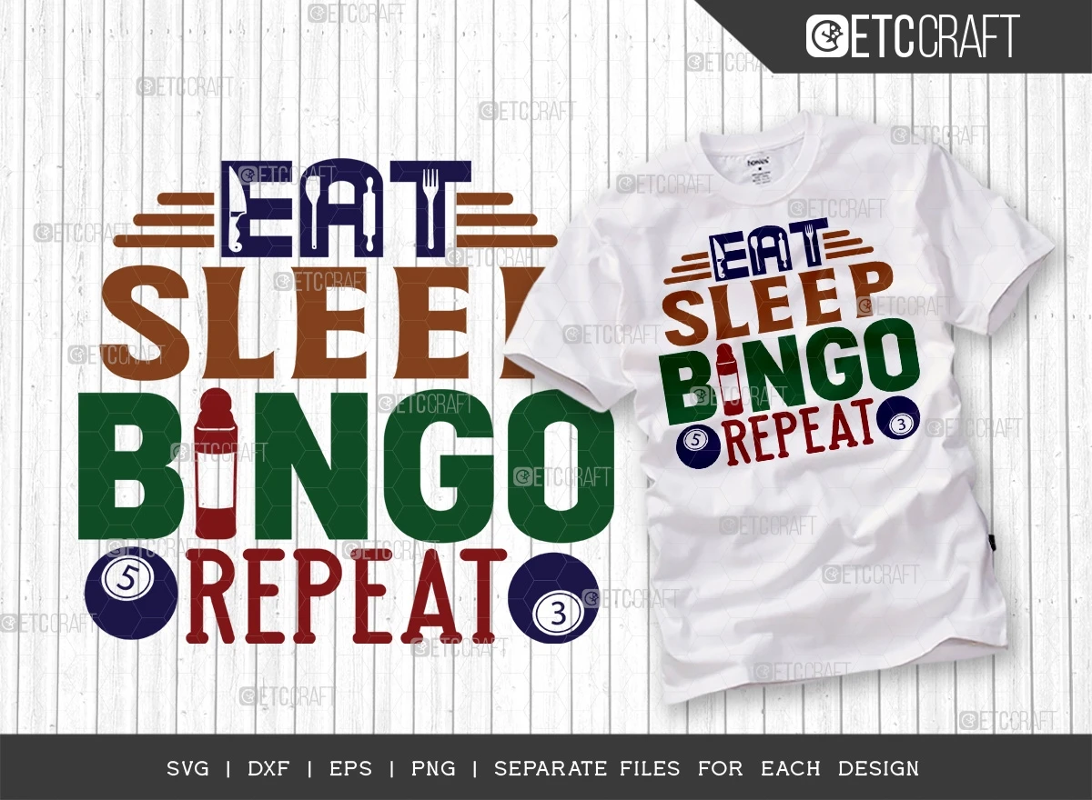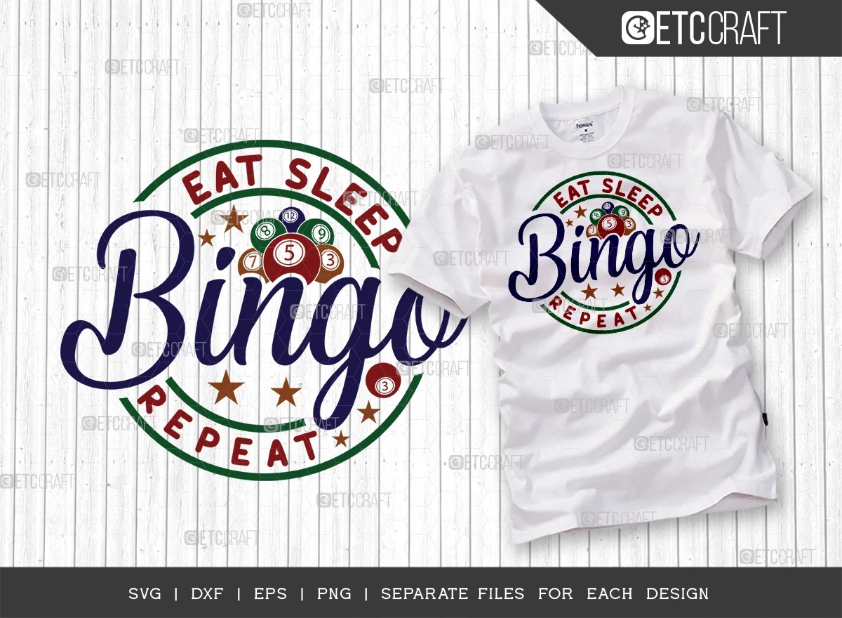 Upgrade your bingo game attire with our Eat Sleep Bingo Repeat SVG Bundle. Purchase now and let the world know about your passion for this classic game!