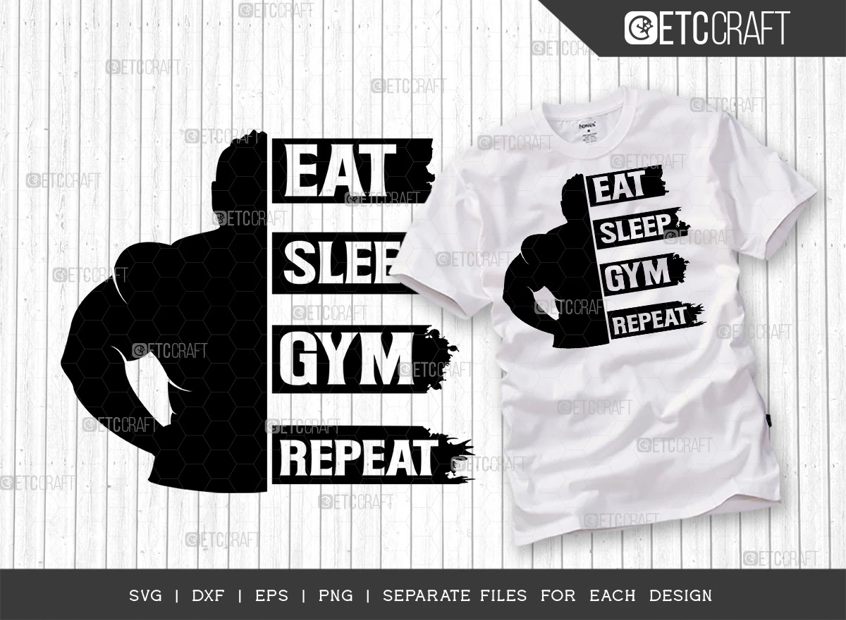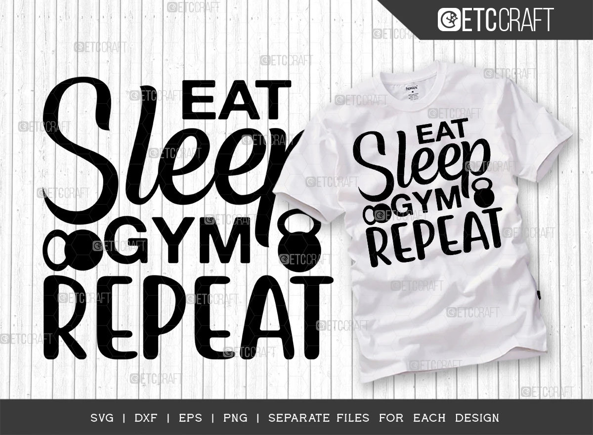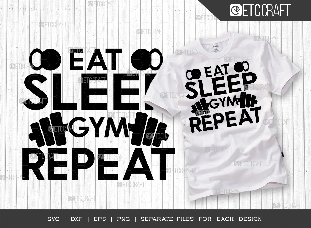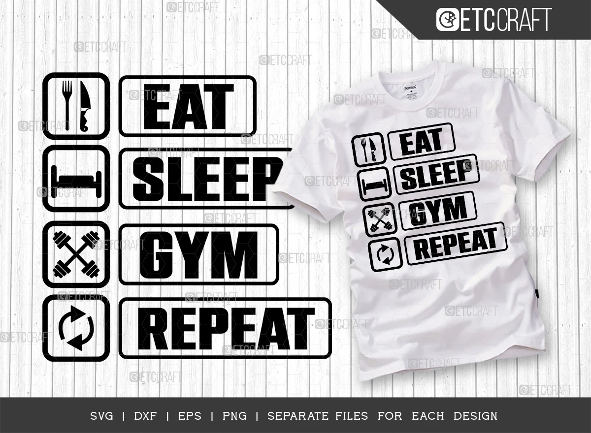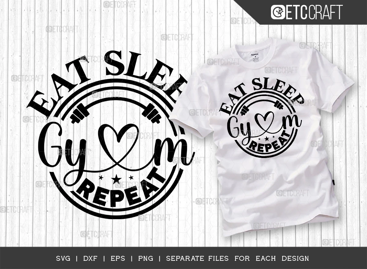 Introducing the Eat Sleep Gym Repeat SVG Bundle, the ultimate t-shirt design for fitness enthusiasts and gym-goers. With a collection of stunning graphics including Weights Svg, Gym Svg, Fitness Svg, Workout Svg, Bodybuilding Svg, and inspiring Gym Quotes, this bundle is designed to motivate and energize your fitness journey.