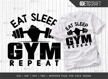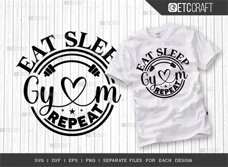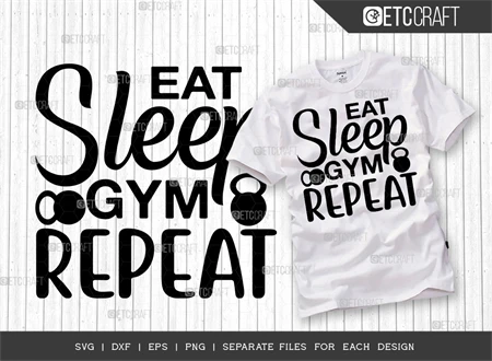 Unlock your fitness potential and showcase your dedication with the Eat Sleep Gym Repeat SVG Bundle. Get inspired, motivated, and energized to reach new heights in your fitness journey. Order now and start making a statement with your style!