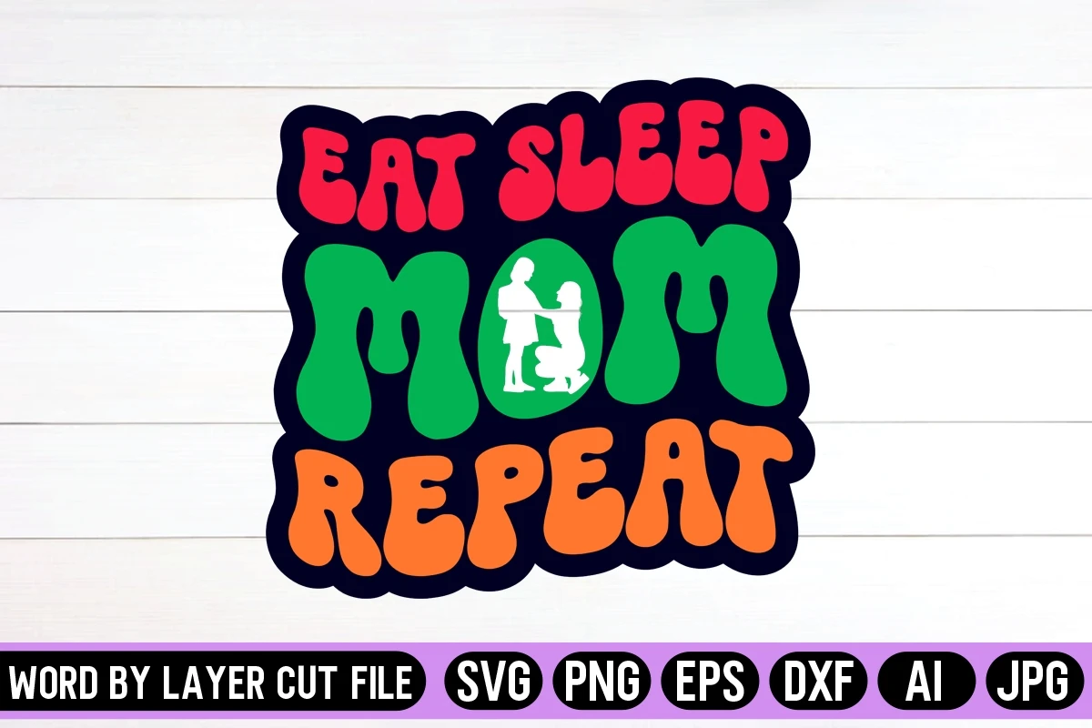 Eat Sleep Mom Repeat Retro Design