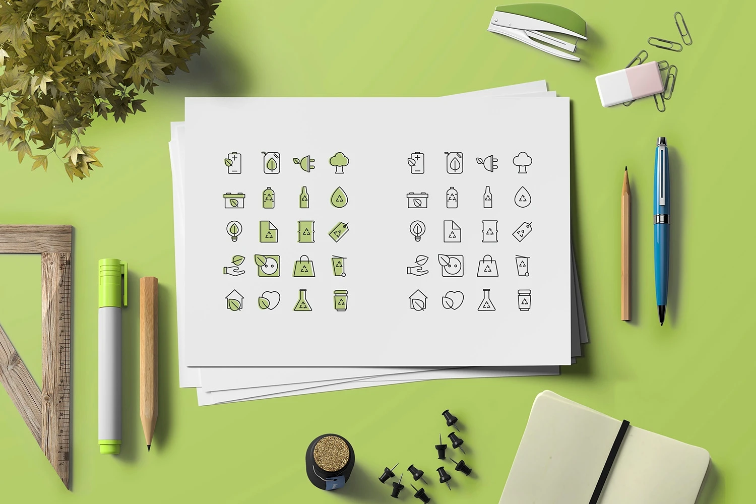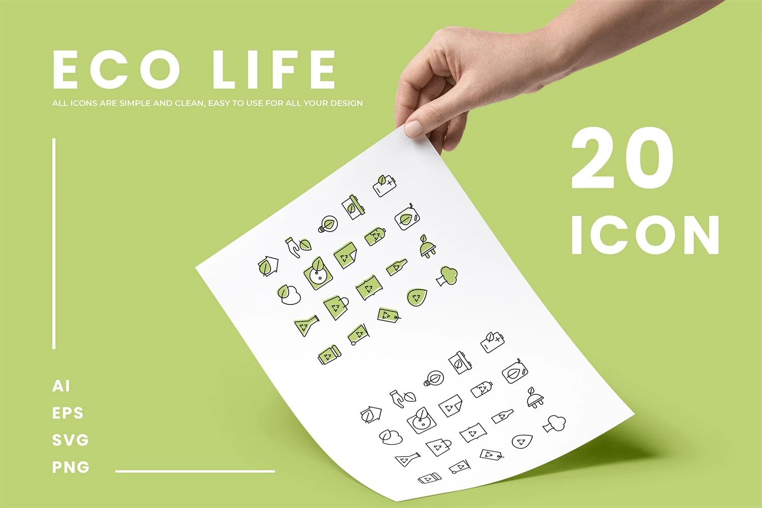 Don't miss it Eco Life - Icons This professional Icons pack, high quality, for professional designers, easy to use, fully editable & customizable in Adobe Illustrator